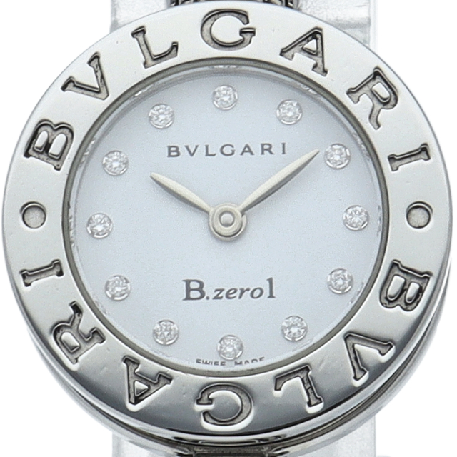 ブルガリの大人気シリーズ「ビーゼロワン」。アクセサリー感覚で着用できるかわいらしい人気ウォッチ。文字盤に12Pダイヤモンドが施された贅沢な1本。BZ22SS(BZ22WSS/12P)