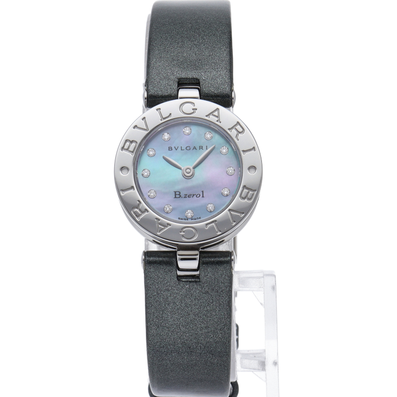 ブルガリの大人気シリーズ「ビーゼロワン」。アクセサリー感覚で着用できるかわいらしい人気ウォッチ。文字盤に12Pダイヤモンドが施された贅沢な1本。BZ22SS。
