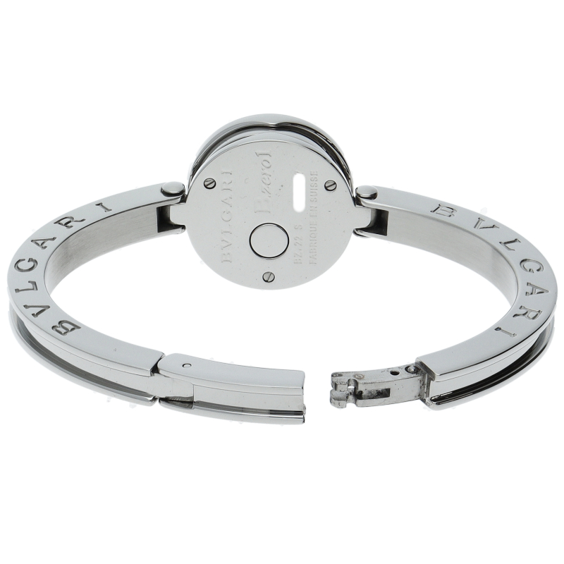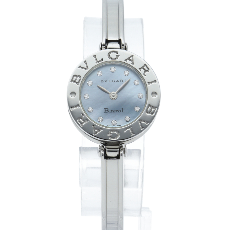 ブルガリの大人気シリーズ「ビーゼロワン」。アクセサリー感覚で着用できるかわいらしい人気ウォッチ。文字盤に12Pダイヤモンドが施された贅沢な1本。BZ22SS/BZ22BSS/12P。