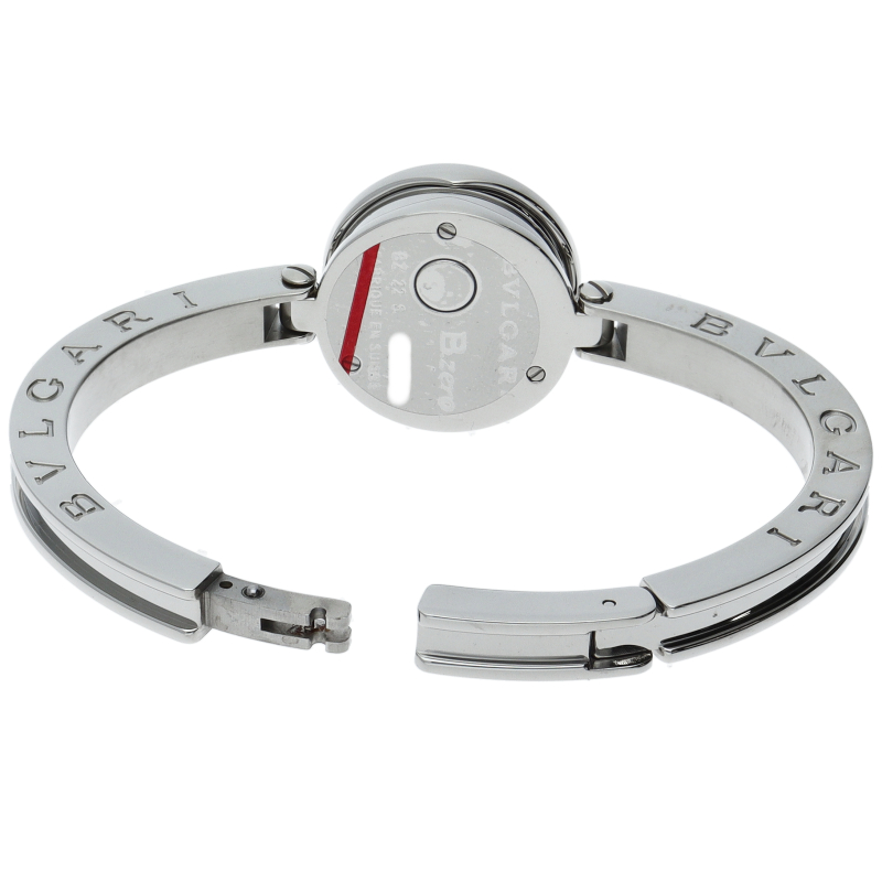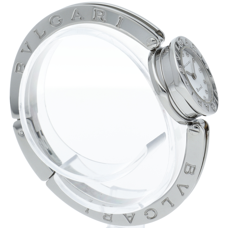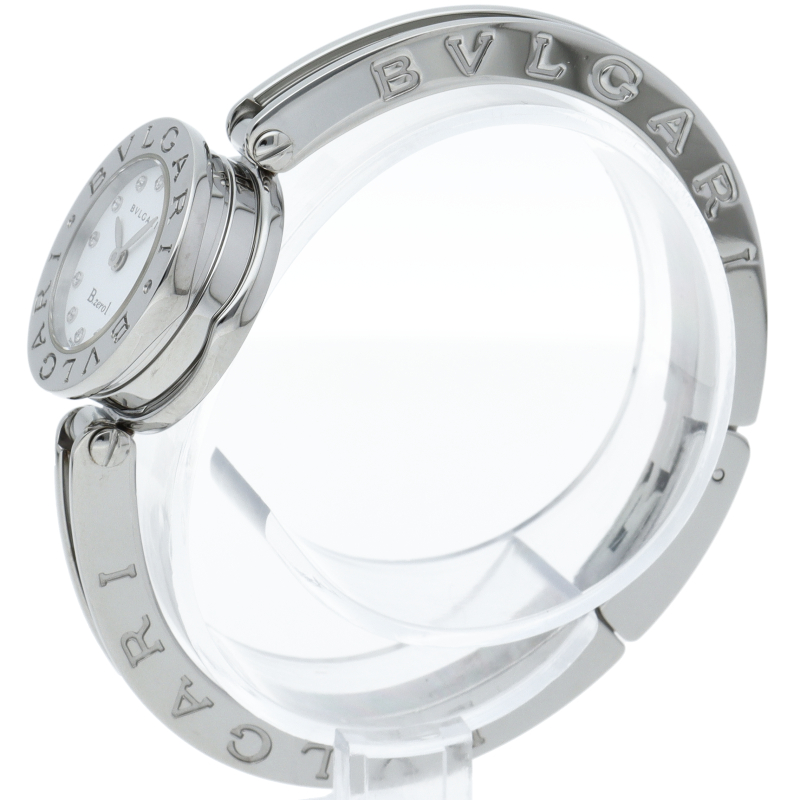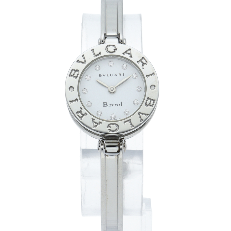 ブルガリの大人気シリーズ「ビーゼロワン」。アクセサリー感覚で着用できるかわいらしい人気ウォッチ。文字盤に12Pダイヤモンドが施された贅沢な1本。BZ22SS/BZ22WSS/12P