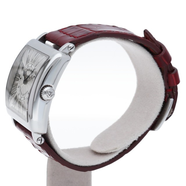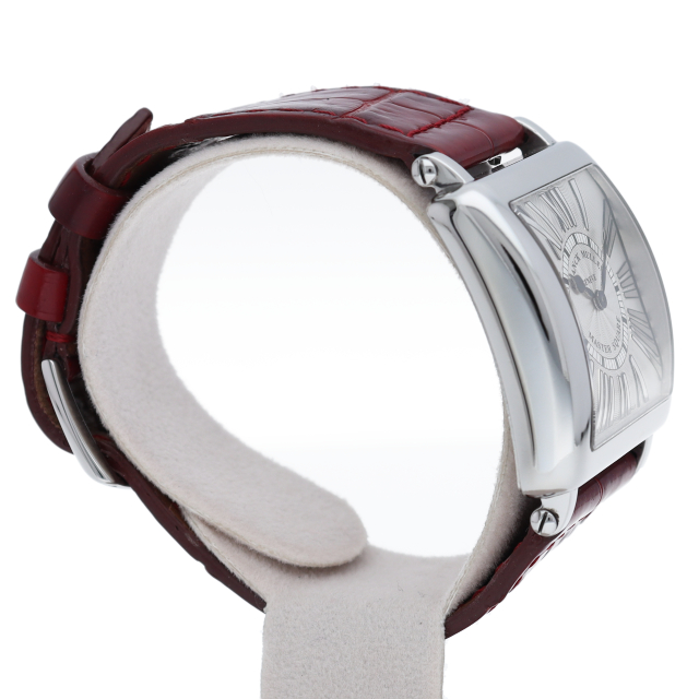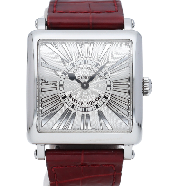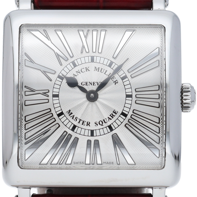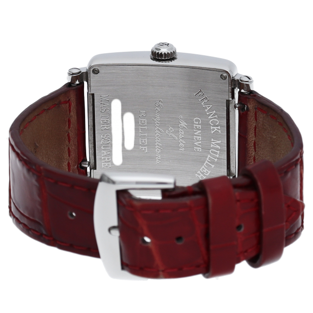 フランクミュラーの人気シリーズ「マスタースクエア」。美しいギョーシェ模様やブラックのスペード指針とともに、フランクミュラーならではのクラシカル、かつ洗練された一本です。