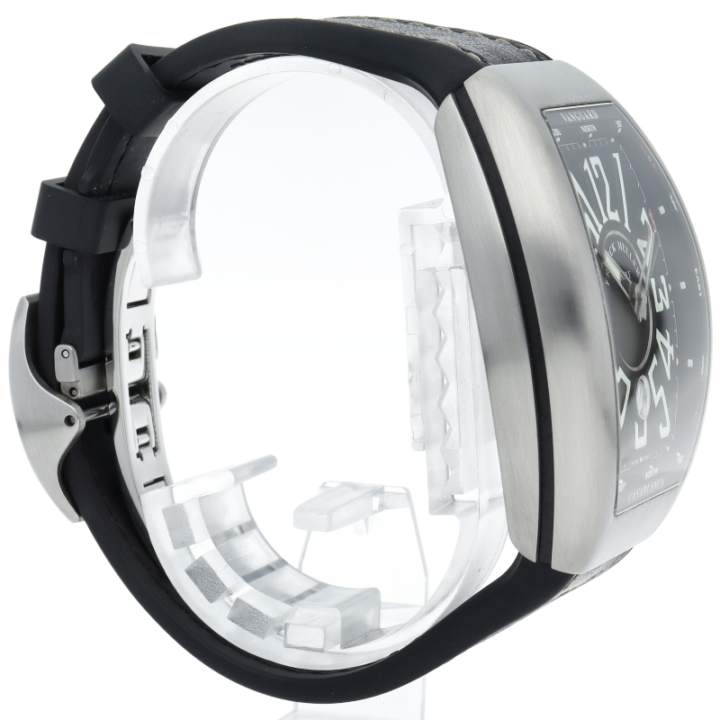 最新コレクション“ヴァンガード”。ラグなし一体構造が最大の特徴です。力強く、迫力のあるケースサイズと文字盤で圧倒的な存在感を放ちます。