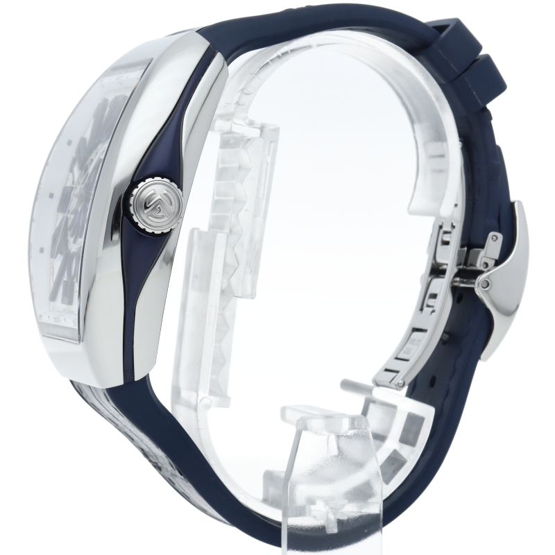 メガヨットで航海する世界観をモチーフにした「ヴァンガード ヨッティング」。ケースは船艇の上質で引き締まった曲線美を表現しています。メガヨットで巡る航海を思い起こさせる視認性の高い文字盤には風配図がデザインされ、インデックスには独自のヴァンガード スタイルの数字を採用。優雅なフォルム、特徴的でユニークな造形美、ヨットオーナーにとっても理想的な時計です。V45SCDT/V45SCDTYACHTING。