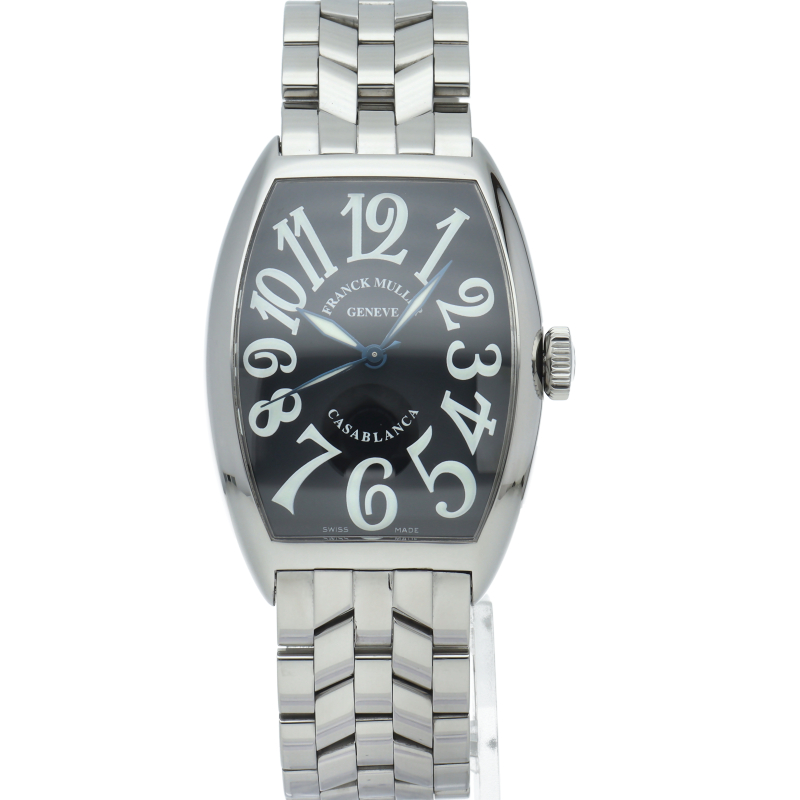 フランクミュラーの人気シリーズ「カサブランカ」。トノー型ケースと個性的な文字盤デザインが特徴的なフランクミュラーを代表する時計です。