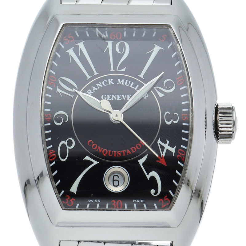 フランク・ミュラーの人気シリーズ「コンキスタドール」。緩やかな曲線を描く完成されたデザインの中にスポーティーさも兼ね備えたハイセンスな1本です。