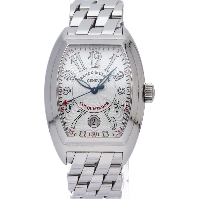 フランク・ミュラーの人気シリーズ「コンキスタドール」。緩やかな曲線を描く完成されたデザインの中にスポーティーさも兼ね備えたハイセンスな1本です。