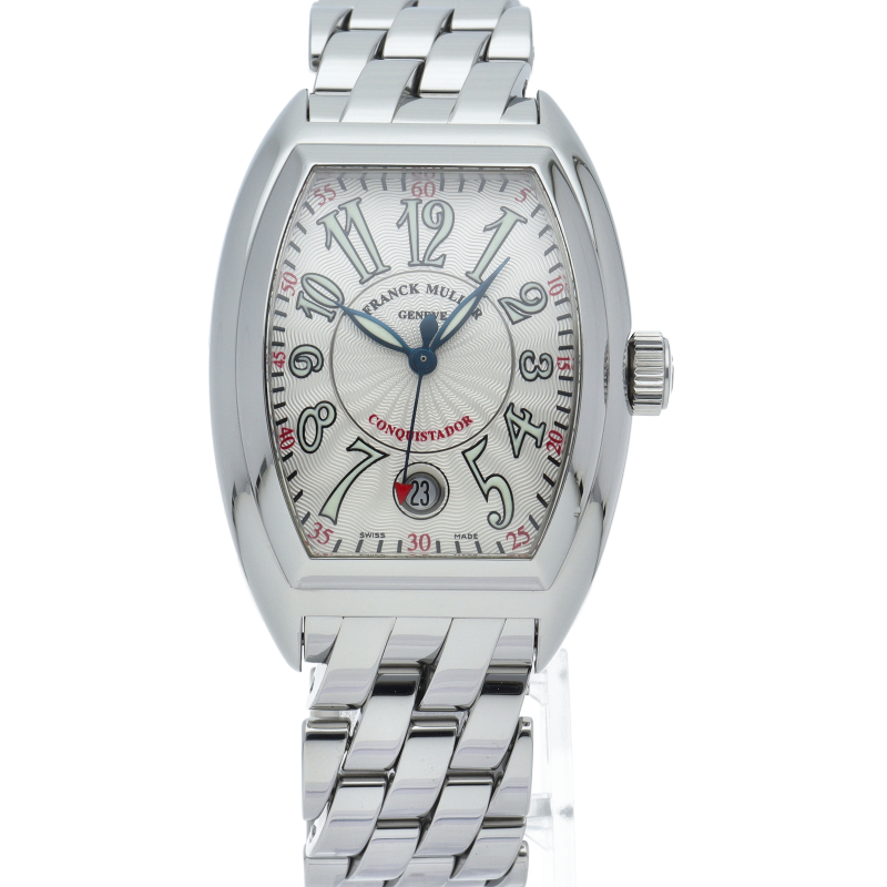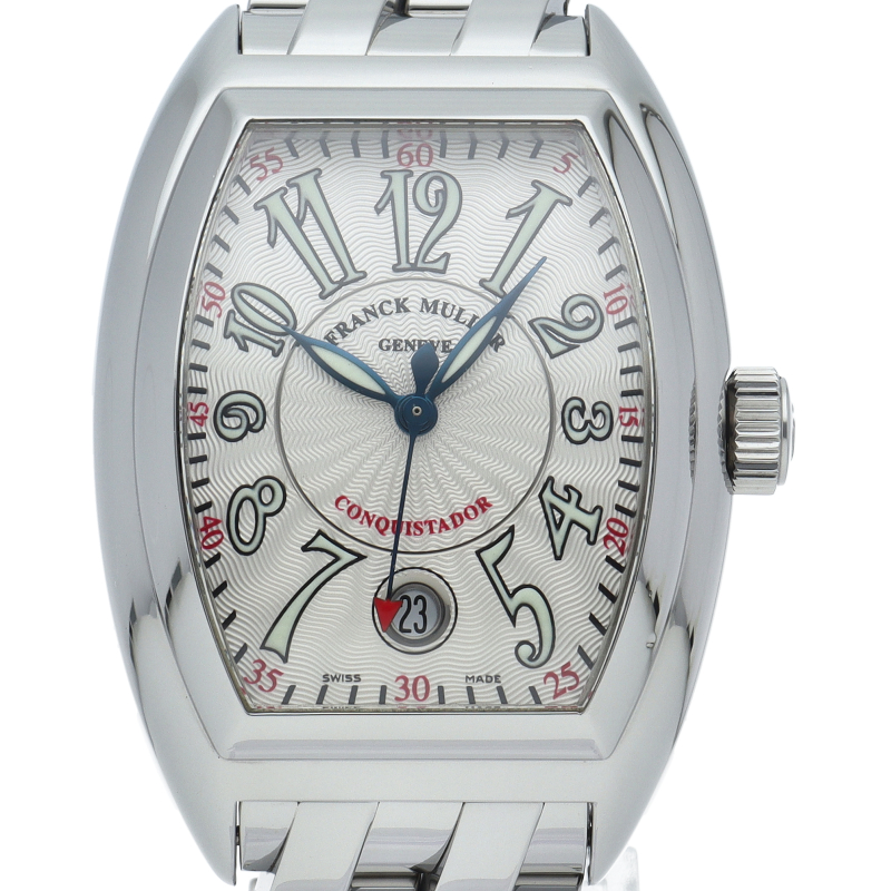 フランク・ミュラーの人気シリーズ「コンキスタドール」。緩やかな曲線を描く完成されたデザインの中にスポーティーさも兼ね備えたハイセンスな1本です。