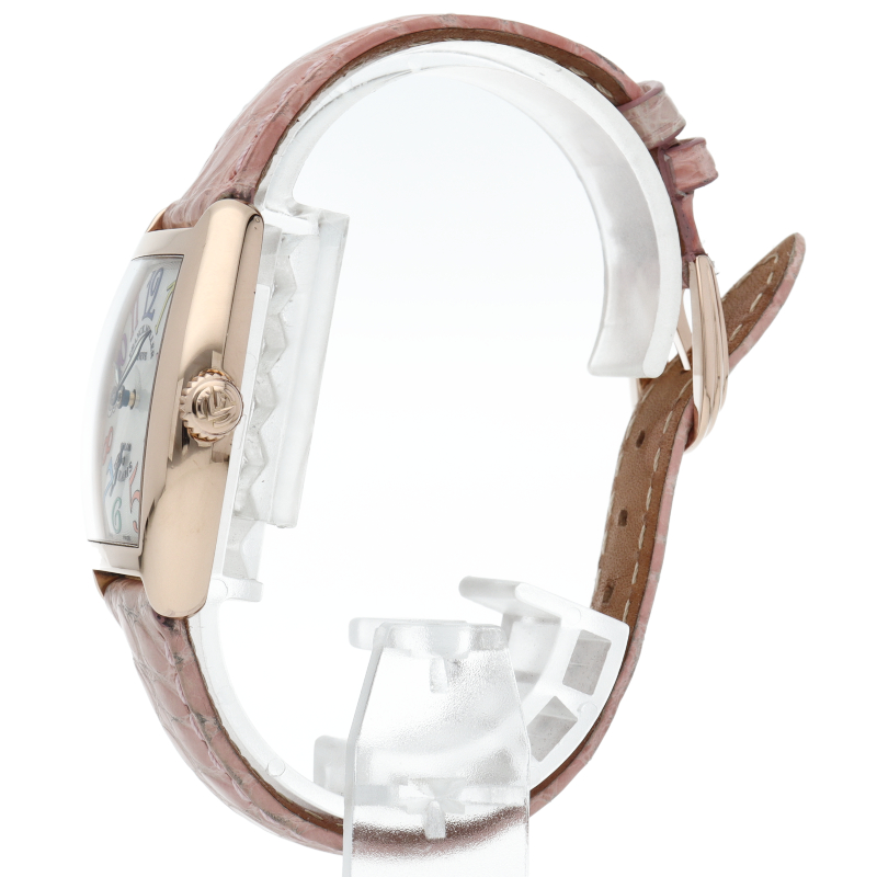 美品。ガラスに点傷が見られますが、肉眼では目立ちません。革バンドは社外品ですが尾錠はメーカー純正品です。K18PG製尾錠。