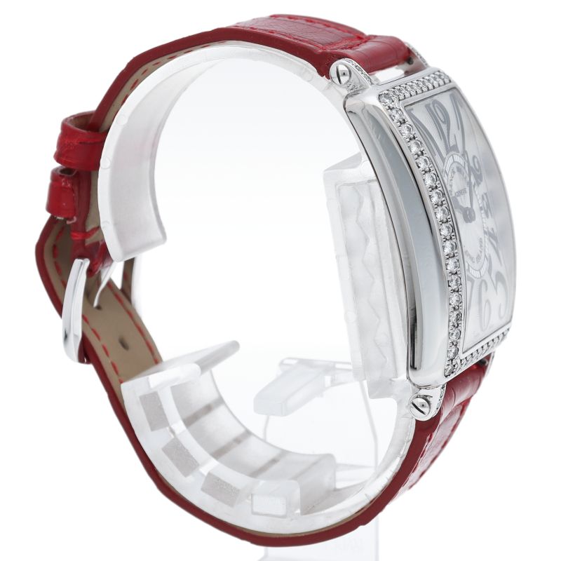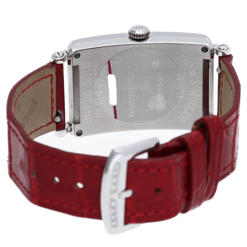 フランクミュラーの中でも特に人気のある「ロングアイランド」。大型のケースサイズが見る人を圧倒させる1本。ベゼル・尾錠にはきれいなダイヤモンドが施されたステータスウォッチです。