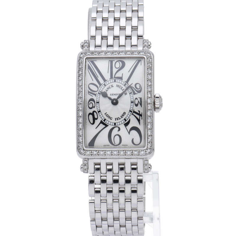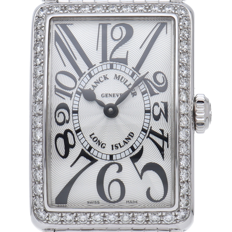 フランクミュラーの中でも特に人気のある「ロングアイランド」。こちらはケース、ラグにダイヤモンドを施した豪華なモデルです。