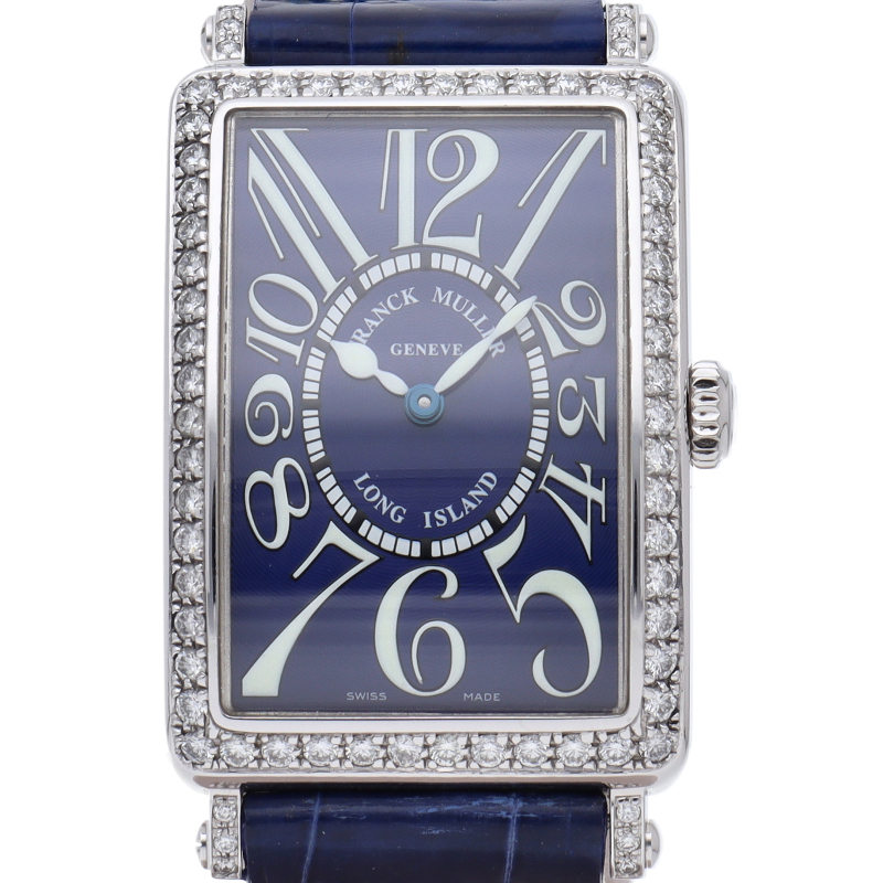 フランクミュラーの中でも特に人気のある「ロングアイランド」。ベゼル・尾錠にはきれいなダイヤモンドが施されたステータスウォッチです。