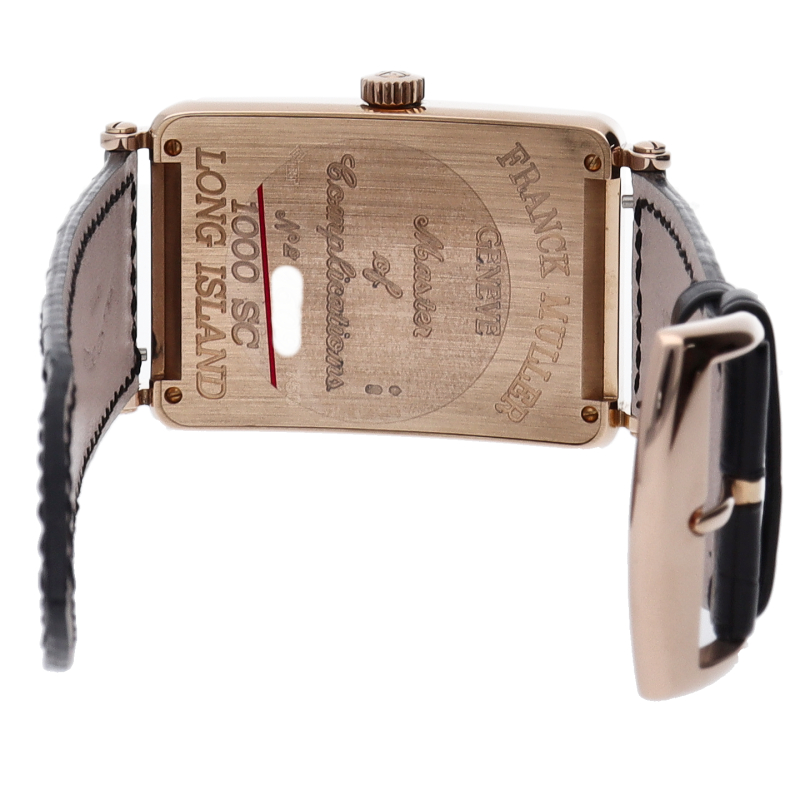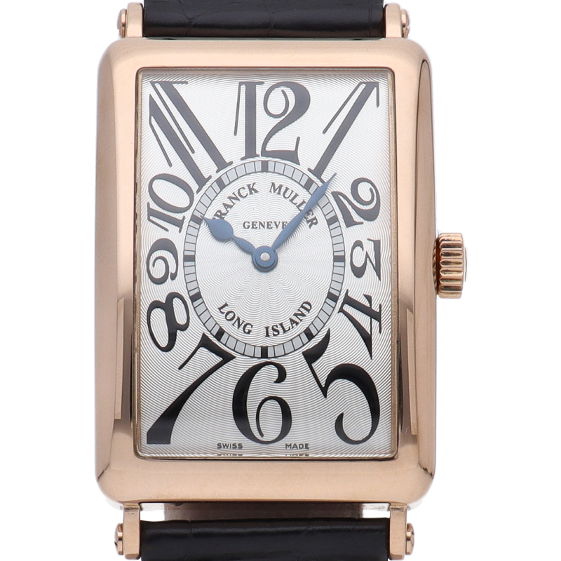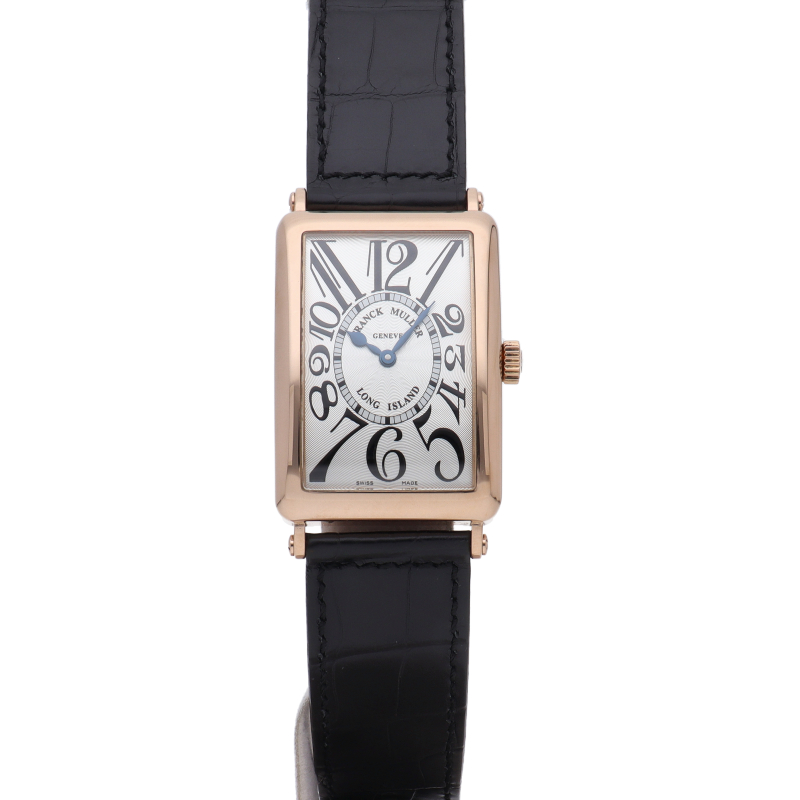 フランクミュラーの中でも特に人気のある「ロングアイランド」。2008年に発表された大型のケースサイズに、フェイスには放射状にギョーシェが施されアラビアインデックスとブルーの指針が高い視認性を誇ります。