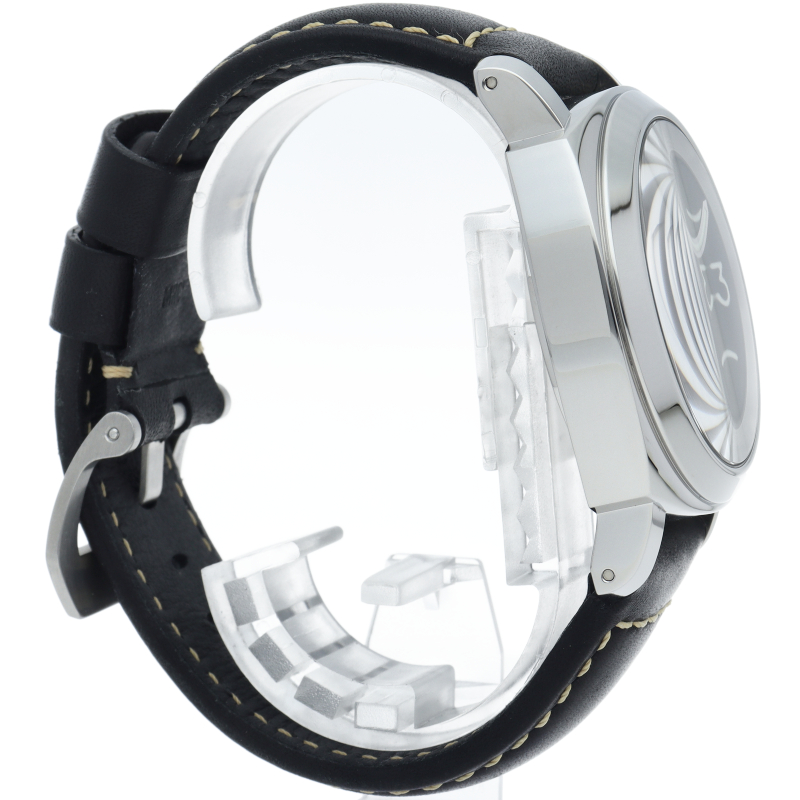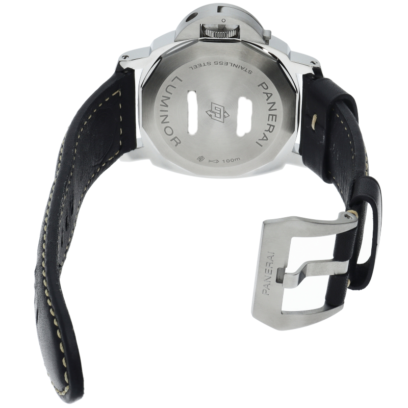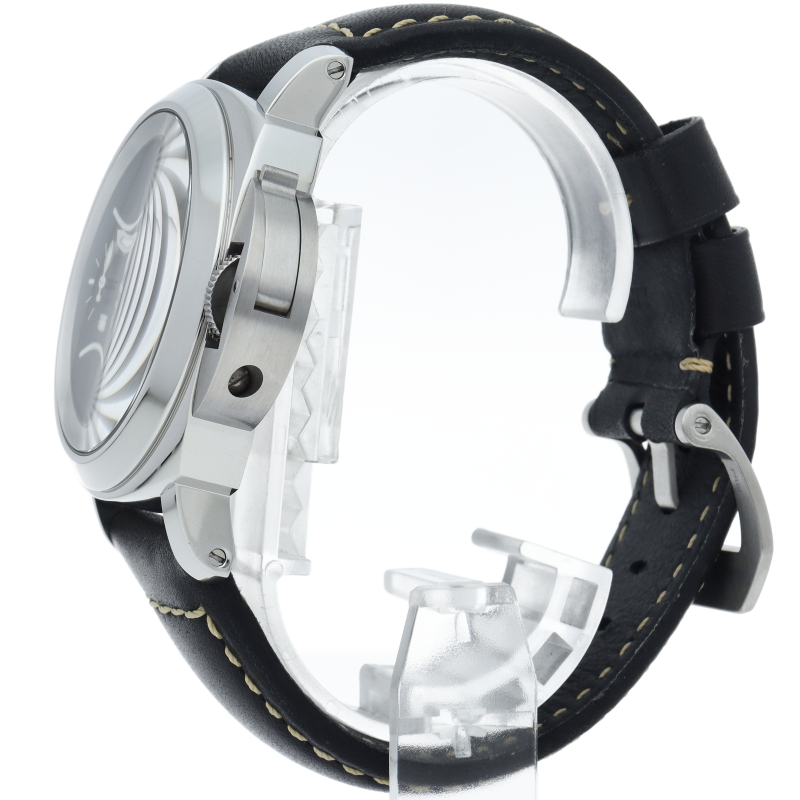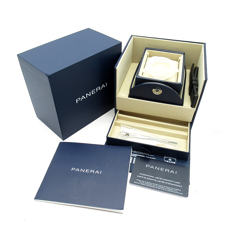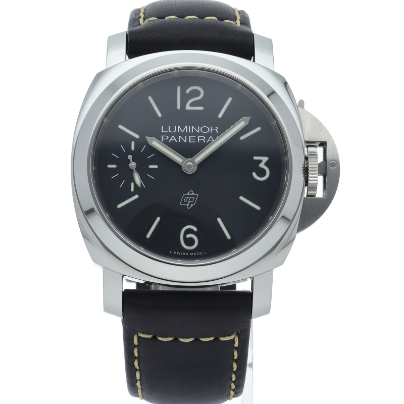 パネライのシンプルな「ルミノールベース」の文字盤にロゴが入ったモデル。OとPの文字と上と下を指し示す矢印を組合わせたOPロゴはパネライが時計製造に携わってきた潜水用と航空用、つまりの海と空を表したものです。ムーブメントには3日間のパワーリザーブを備えた自社製手巻きキャリバーのP.6000を搭載。ステンレス製ケースバックを採用し、防水性能は100mを確保します。OP7233。