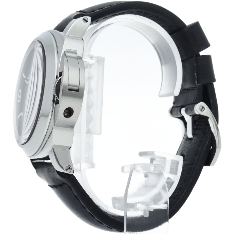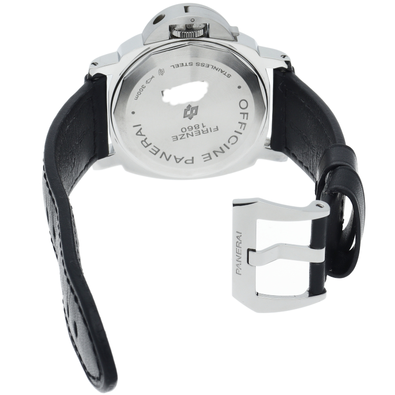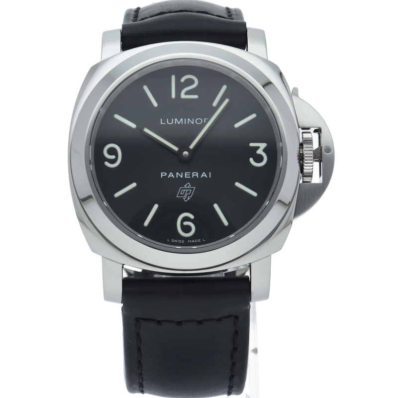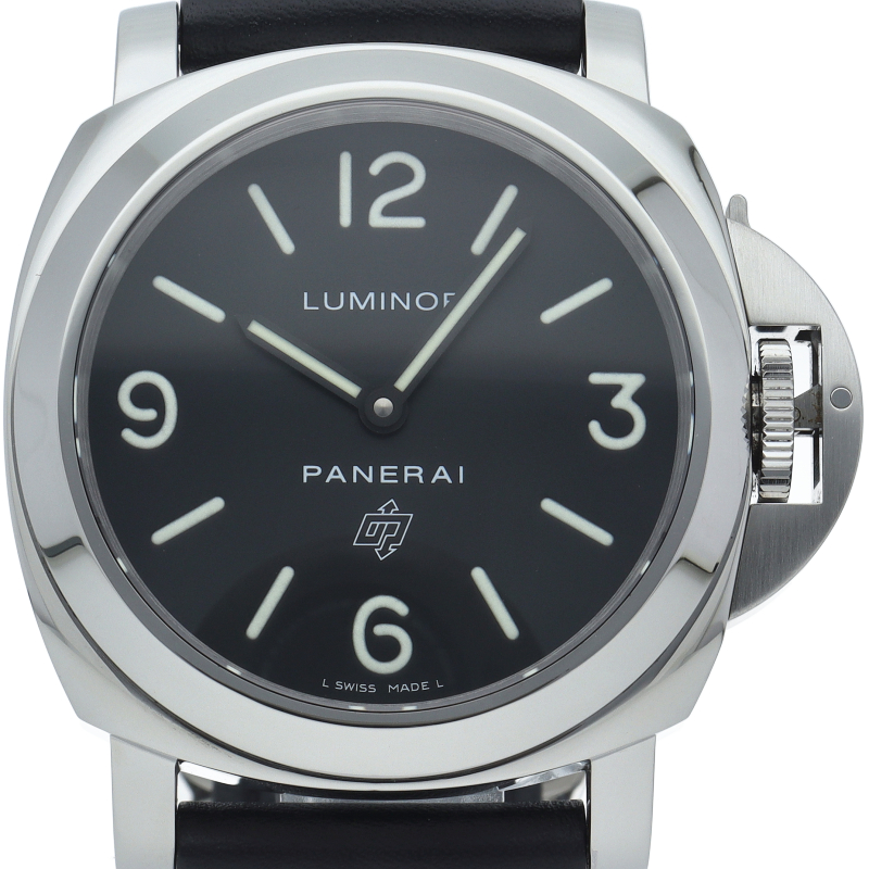 パネライのシンプルな「ルミノールベース」の文字盤にロゴが入ったモデル。裏蓋はスナップバックとなり、すっきりとした印象に変わっております。OP6834。