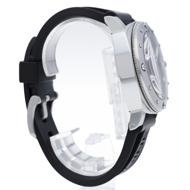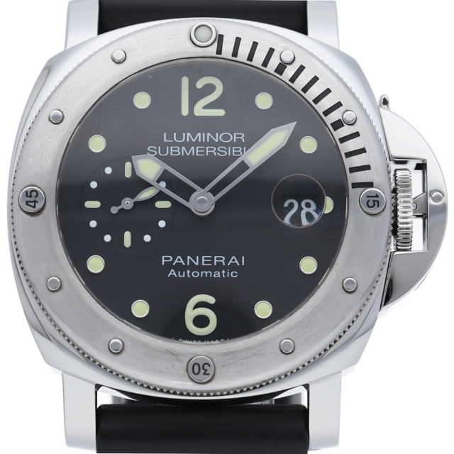 パネライの中でもスポーティーで気骨な印象を持つ「サブマーシブル」。特徴的な逆回転ベゼル、デイト表示機能と実用性とデザイン性を兼ね備えた1本。OP7086。