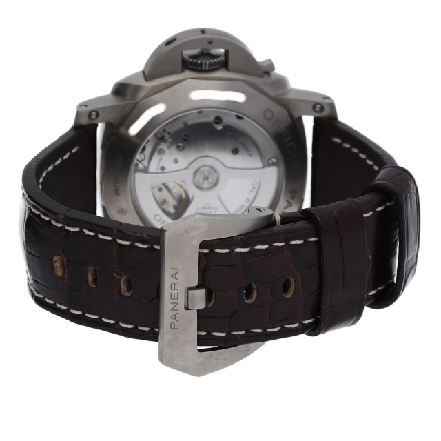 3日間のパワーリザーブをもつパネライ自社製ムーブ「P9000」を搭載。ケースサイズの大きさを特徴とするパネライは、ブレスレットモデルになるとかなりの重量感がありますが、素材にチタンを採用しているため軽量で耐久性が強く、実用性の高い1本となっております。OP6799。