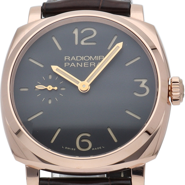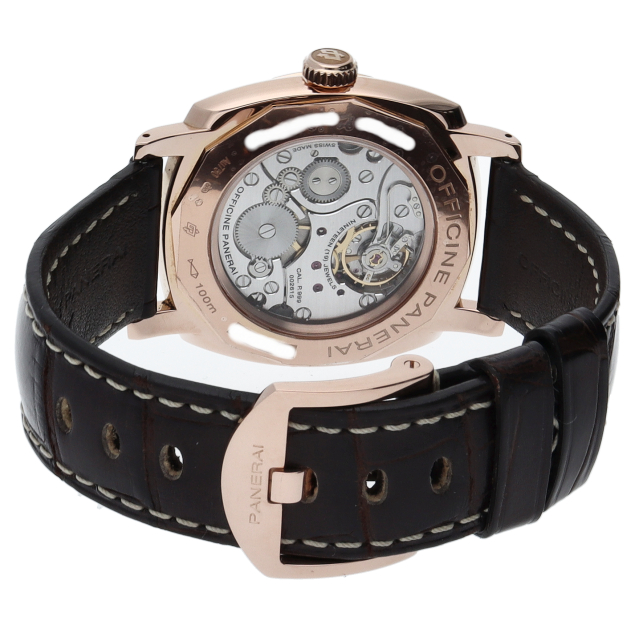 1940年代に生産されていたラジオミールケースを再現したモデルです。それまでのラジミールとは違い、ワイヤーリープから肉厚のラグへと進化。ルミノールケースに近い形になっていますが、リューズガードは有りません。丁度、ラジオミールとルミノールの中間のようなデザインになっています。キャリバーはパネライ自社ムーブメント最薄のCal.P.999/1を搭載。OP6935。