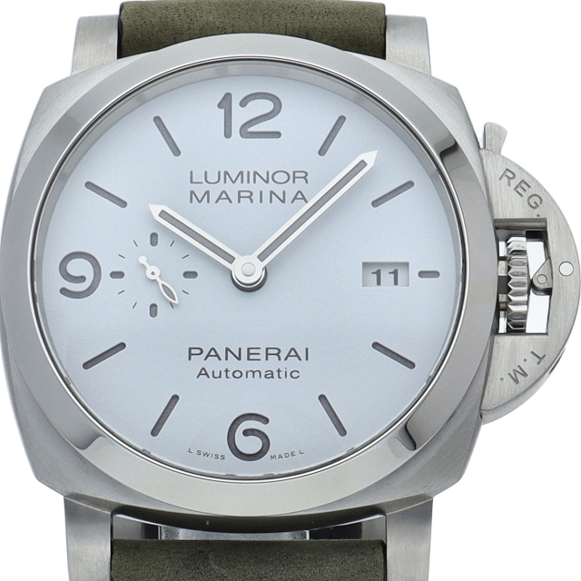 パネライの中でも特に人気度の高いパワーリザーブ機能付の「ルミノールマリーナ44」。迫力ある44ミリサイズで仕事から遊びまで使えるオススメの1本。OP7393。