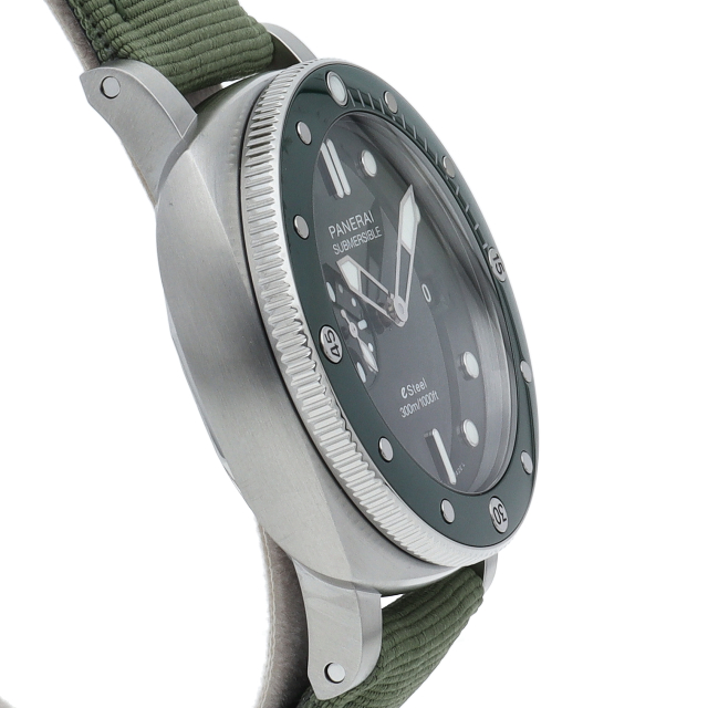 パネライの中でもスポーティーで気骨な印象を持つ「サブマーシブル」。特徴的な逆回転ベゼル、デイト表示機能と実用性とデザイン性を兼ね備えた1本。