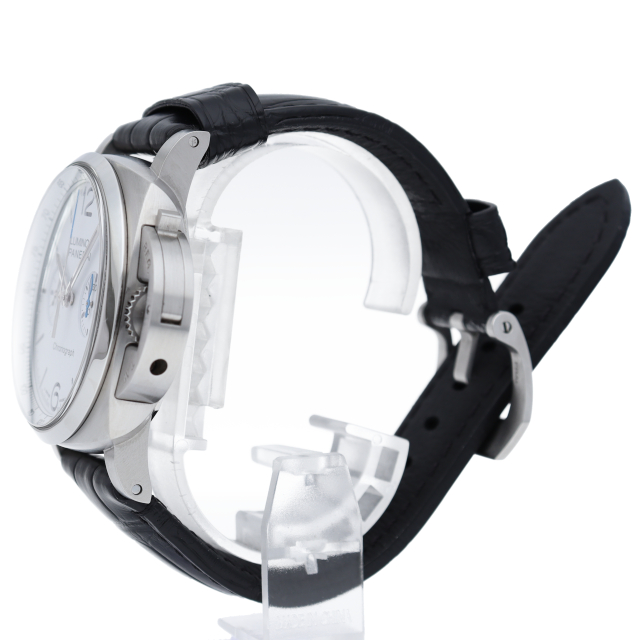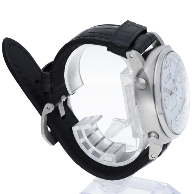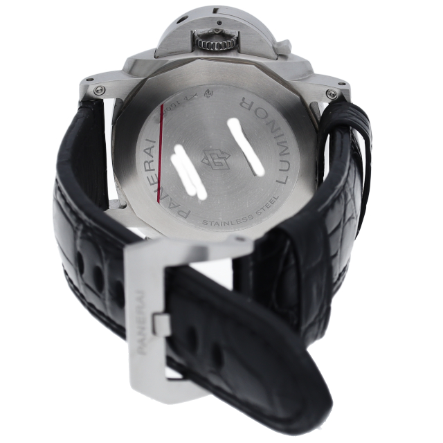 ルミノールはラジオミールと人気を二分するパネライの基幹コレクション。ラジオミールの進化版であるルミノールは防水機能を確保するため、大型のりゅうずガードプロテクターが装着されているのが特徴です。現代的にブラッシュアップされたデザイン、機能を備えるパネライのアイコンともいえるコレクションです。OP7318。