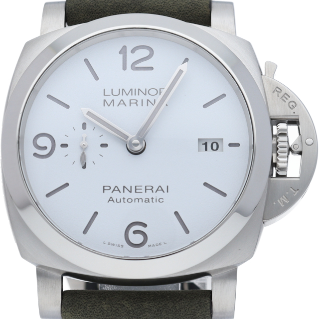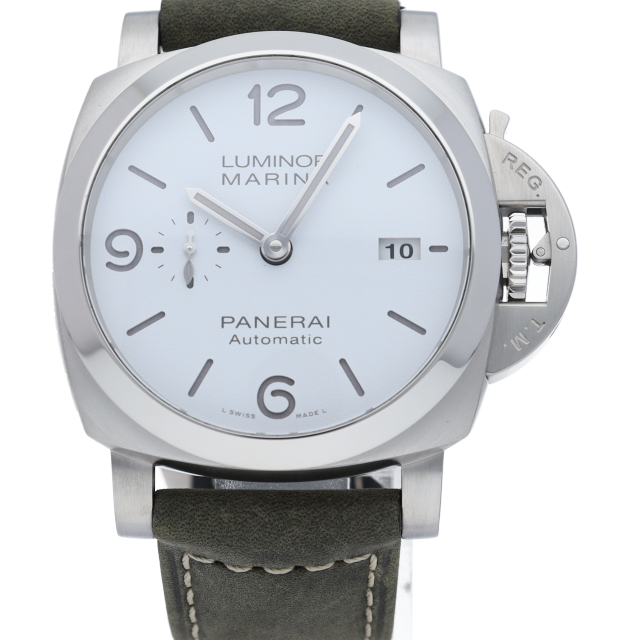 パネライの中でも特に人気度の高いパワーリザーブ機能付の「ルミノールマリーナ44」。迫力ある44ミリサイズで仕事から遊びまで使えるオススメの1本。OP7393。