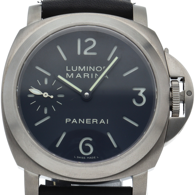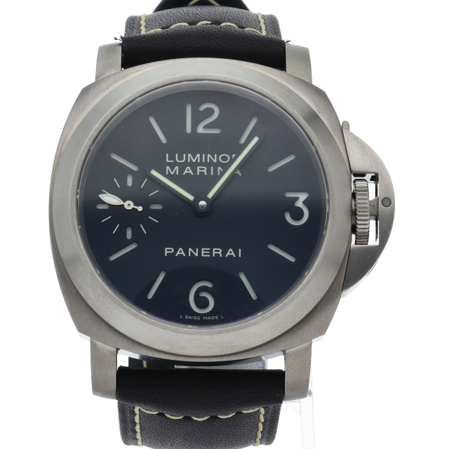 大人気のパネライルミノールマリーナ44。ステンレスモデルとは違う艶の無いケースが特徴です。チタン使用によりステンレスモデルよりも遥かに軽い装着感です。OP6572。