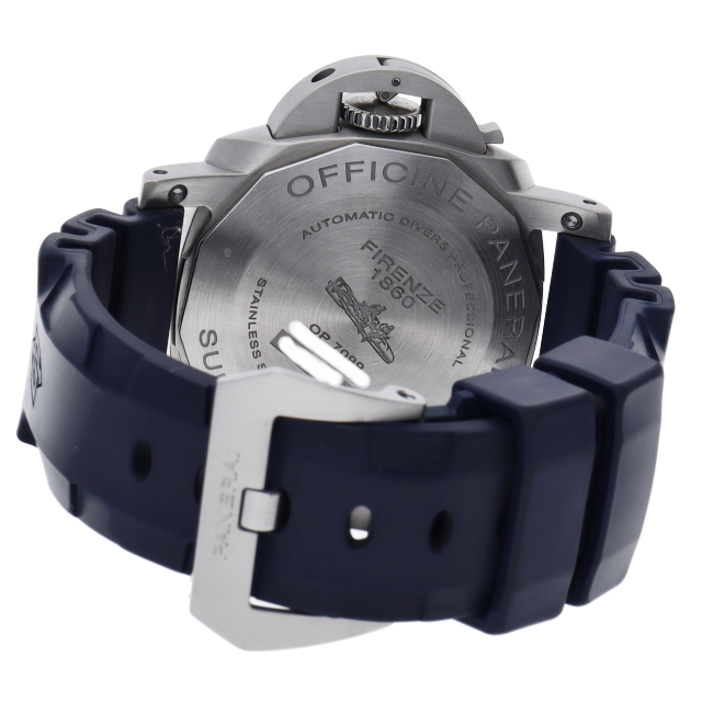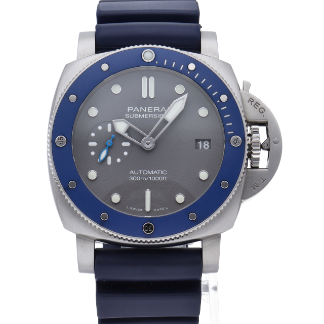 プロフェッショナルダイバーウォッチとして充分な300m防水を確保して、ムーブメントにも3日間のロングパワーリザーブを誇るキャリバーOPXXXIVを搭載。パネライウォッチの特徴でもあるリューズプロテクターはそのままに、シャークグレーと名付けられた文字盤を合わせて、ダイビングベゼルには新たに耐傷性・耐久性に優れたブルーセラミックを採用します。OP7291。