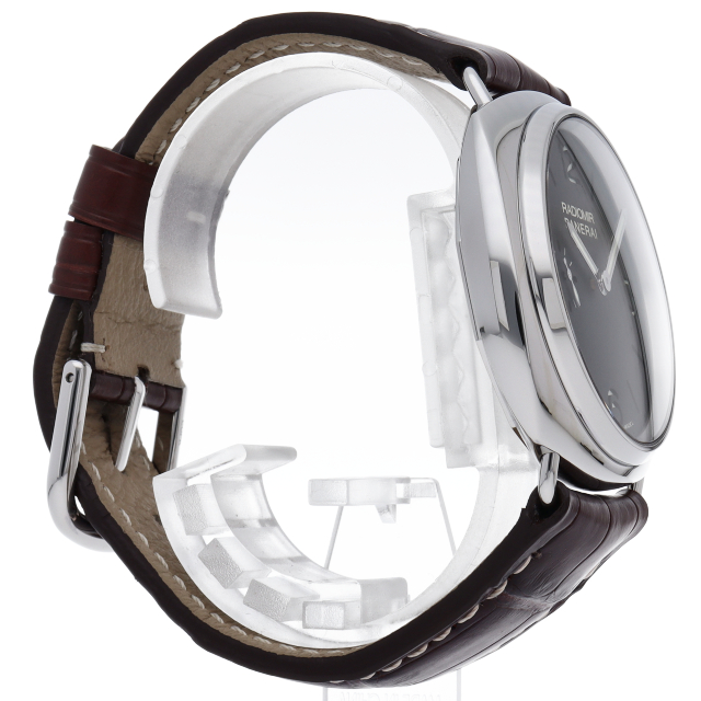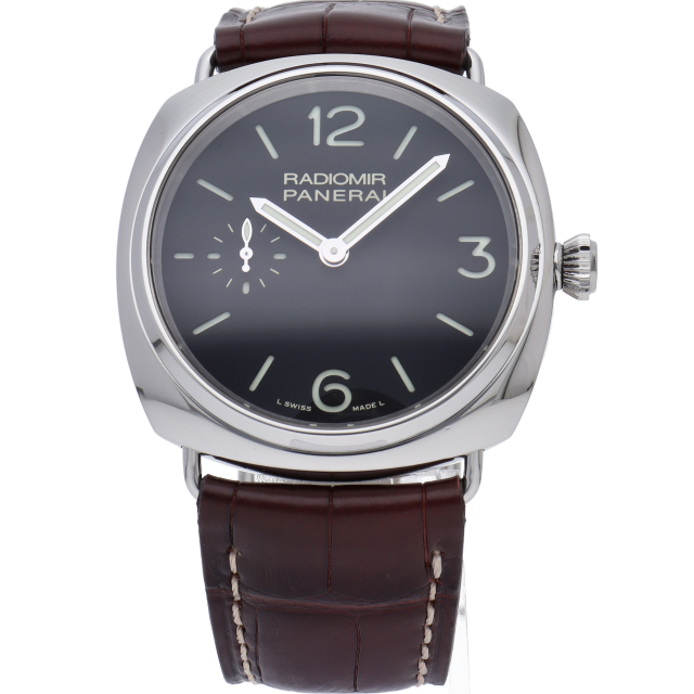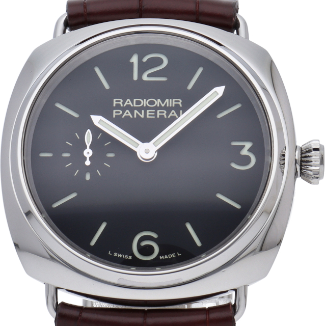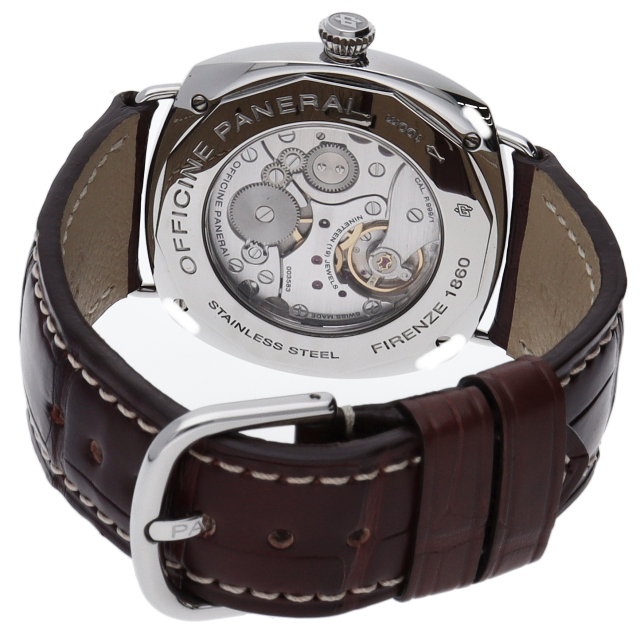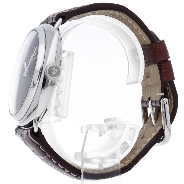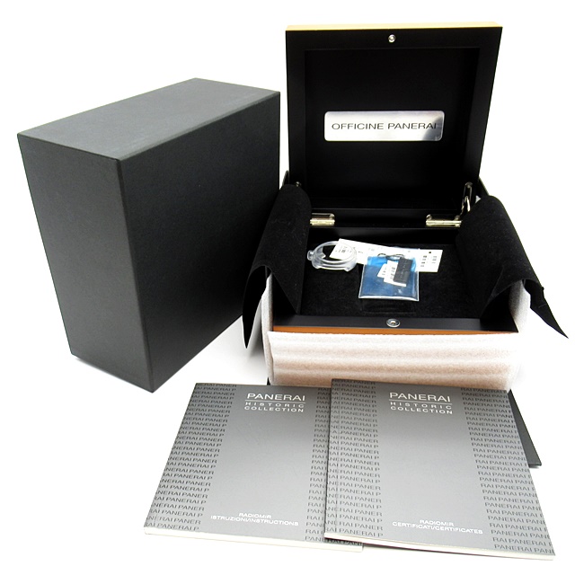 1938年、軍事用として開発された伝説の腕時計「ラジオミール」。“ブラックシール”とはイタリア海軍特殊潜水部隊の名であり、このモデルがもともと軍用時計であったことを象徴しています。過酷な環境下での使用を想定し作られたため、強固なケースに加え視認性に優れる大きなインデックスを採用しており、実用性を重視したミリタリーウォッチに仕上がっています。