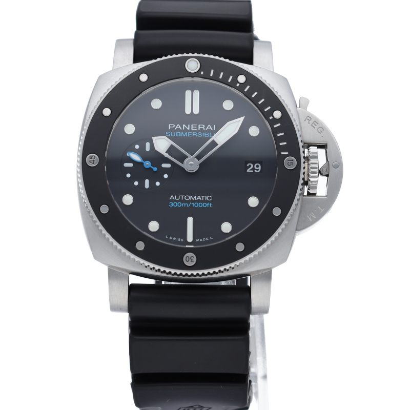 42mmというサイズで、プロフェッショナルダイバーズウォッチのパーソナリティを余すところなく体現するサブマーシブル ウォッチ。逆回転防止ベゼルによって潜水時間を正確に算出することができます。インデックスとスケルトン針にはスーパールミノヴァが塗布されており、暗闇でも高い視認性を確保。OP7297。