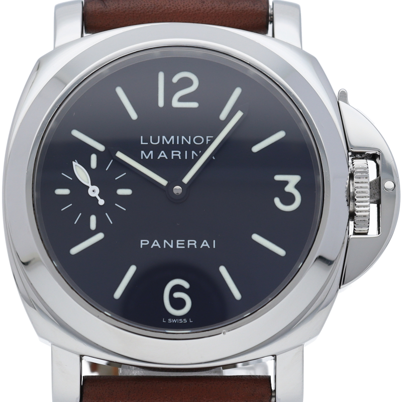 パネライの中でも人気度の高い「ルミノールマリーナ」。9時位置にスモールセコンドを配置したシンプルな44ミリケースとオーソドックスなデザインが人気です。