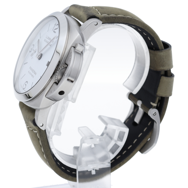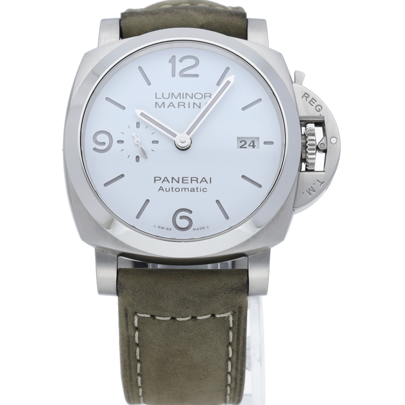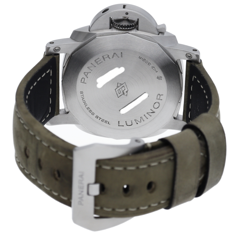 パネライの中でも特に人気度の高いパワーリザーブ機能付の「ルミノールマリーナ44」。迫力ある44ミリサイズで仕事から遊びまで使えるオススメの1本。OP7393。
