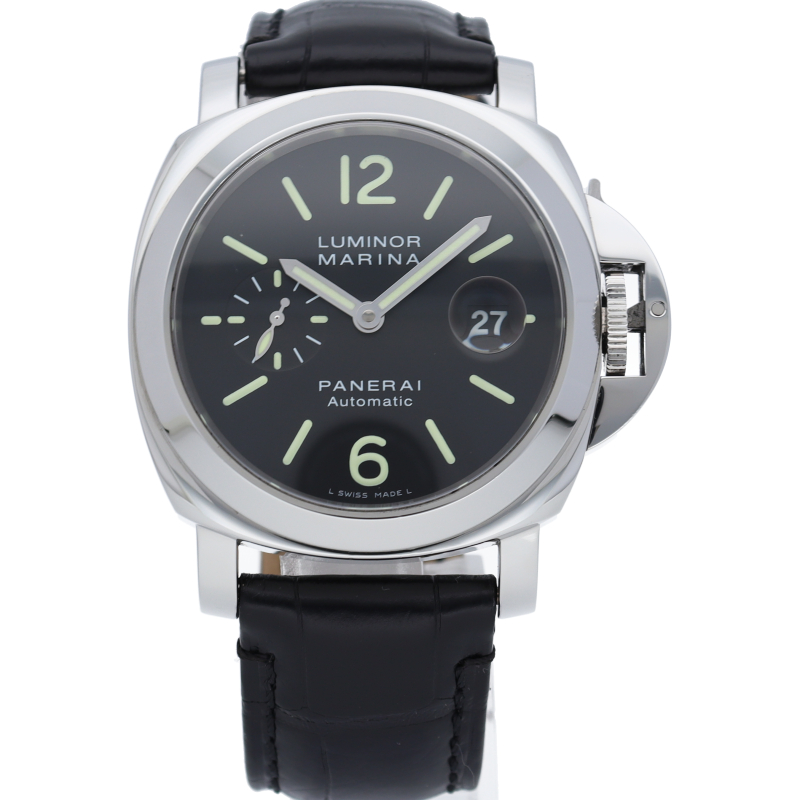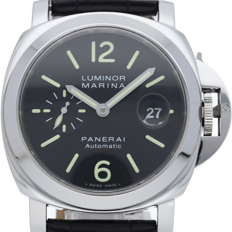 パネライの中でも人気度の高い「ルミノールマリーナ」。デイト表示とスモールセコンドを配置したシンプルな44ミリケースとオーソドックスなデザインが人気です。OP6763。