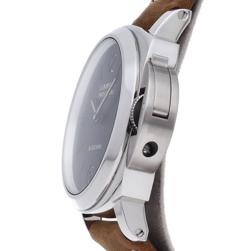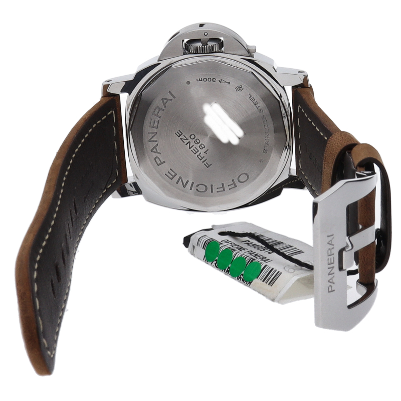 パネライの中でも人気度の高い「ルミノールベース」。44ミリのインパクトあるケースサイズとオーソドックスでシンプルな2針が特徴的な1本。OP7347。