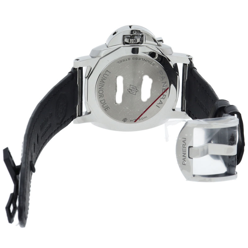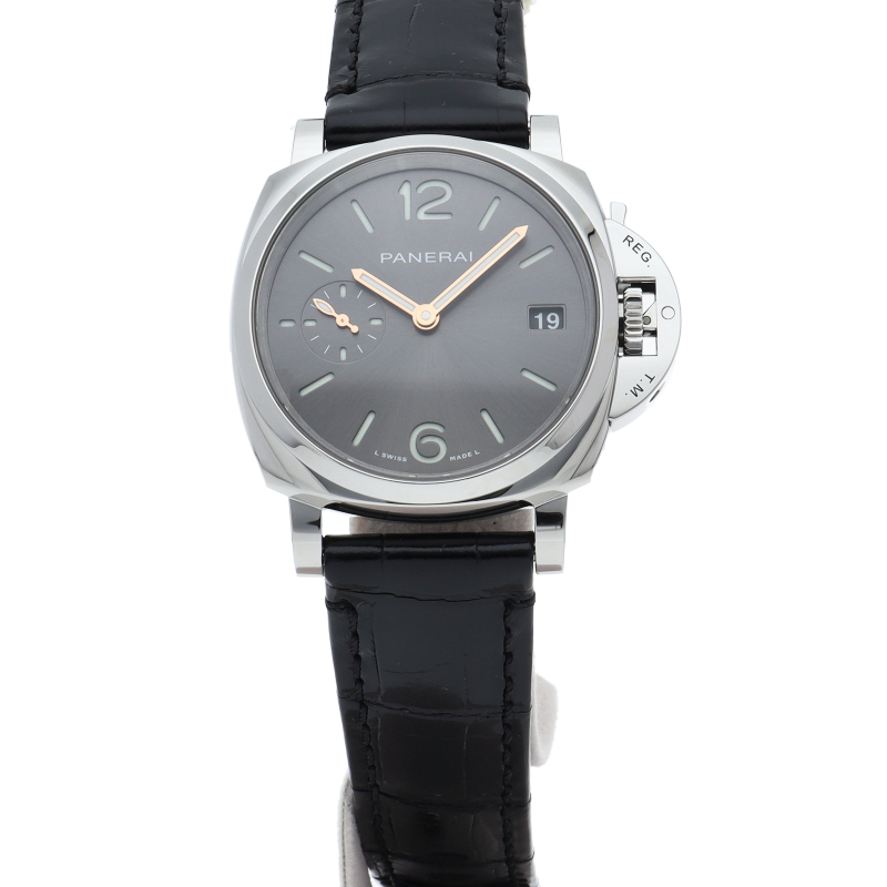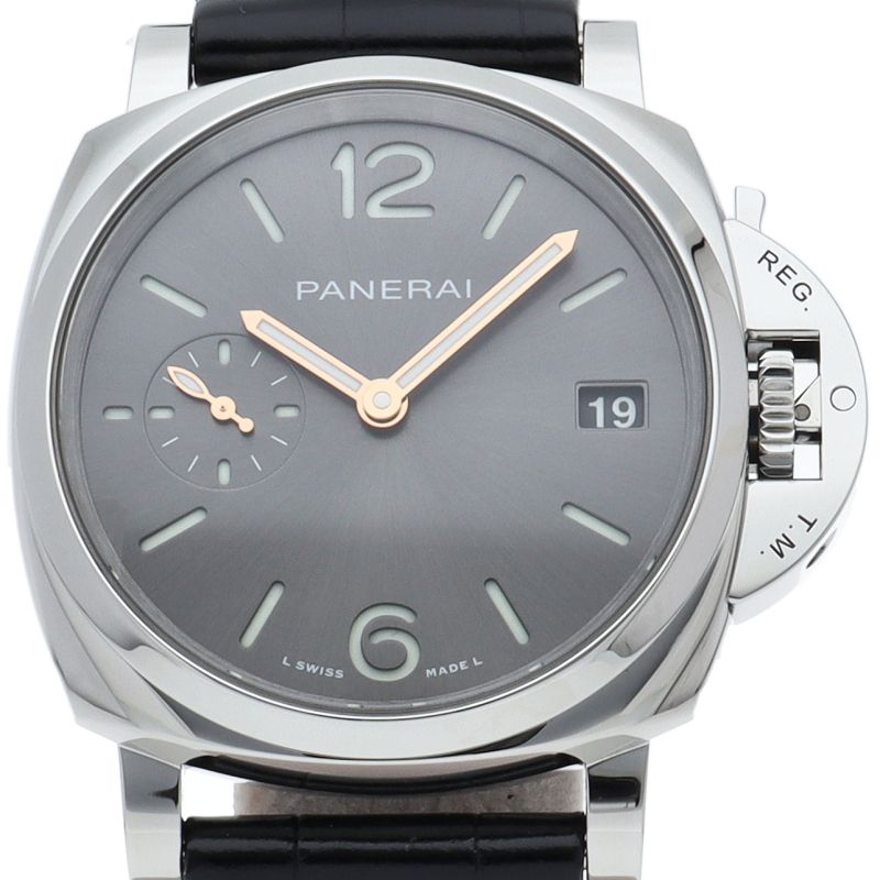 唯一無二のデザインと「デカ厚」なケースが特徴のパネライ。 ラジオミールと人気を二分するパネライの基幹コレクション「ルミノール」は、 パネライ意匠の代表格ともいえるリューズプロテクターが装着されているのが特徴です。 「ルミノール ドゥエ」はルミノールらしいアイコニックなデザインはそのままに、薄型のケースを備えたコレクションです。