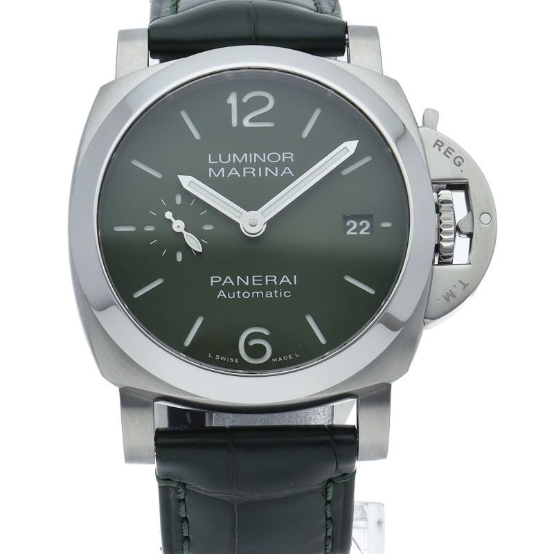 「ルミノール マリーナ」コレクションを再考した「ルミノール マリーナ クアランタ」。「ミリタリーグリーン」を意味する「ベルデミリターレ」と名付けられた「PAM01304」は