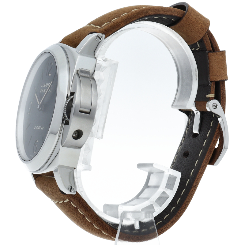 パネライの中でも人気度の高い「ルミノールベース」。44ミリのインパクトあるケースサイズとオーソドックスでシンプルな2針が特徴的な1本。OP7347。