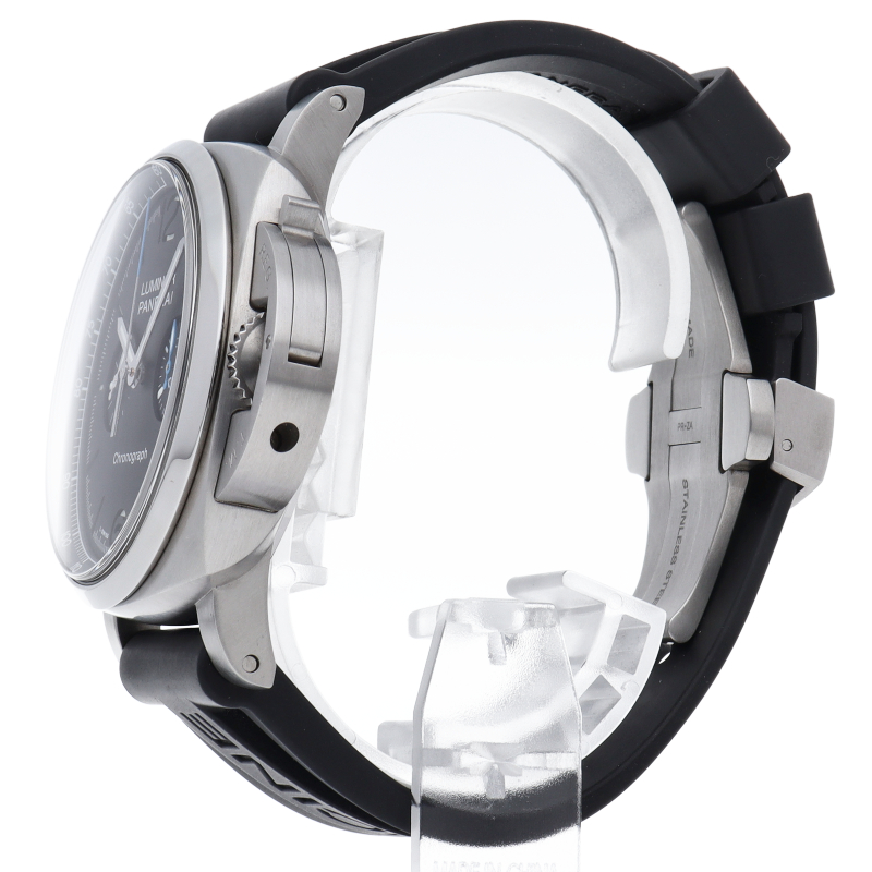 1秒が大きな違いを生む、勝者のために設計された時計。美とイタリアの伝統を融合させた「ルミノール クロノ」では、精度と性能が競い合います。1940年以来、海への情熱がパネライを際立たせ、スポーツの専門知識への情熱を刺激しました。「ルミノール クロノ」は10気圧(水深100m)の防水性を備え、スリムで軽量、また人間工学に基づくデザインがなされています。OP7318。