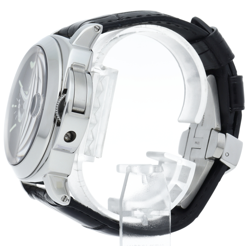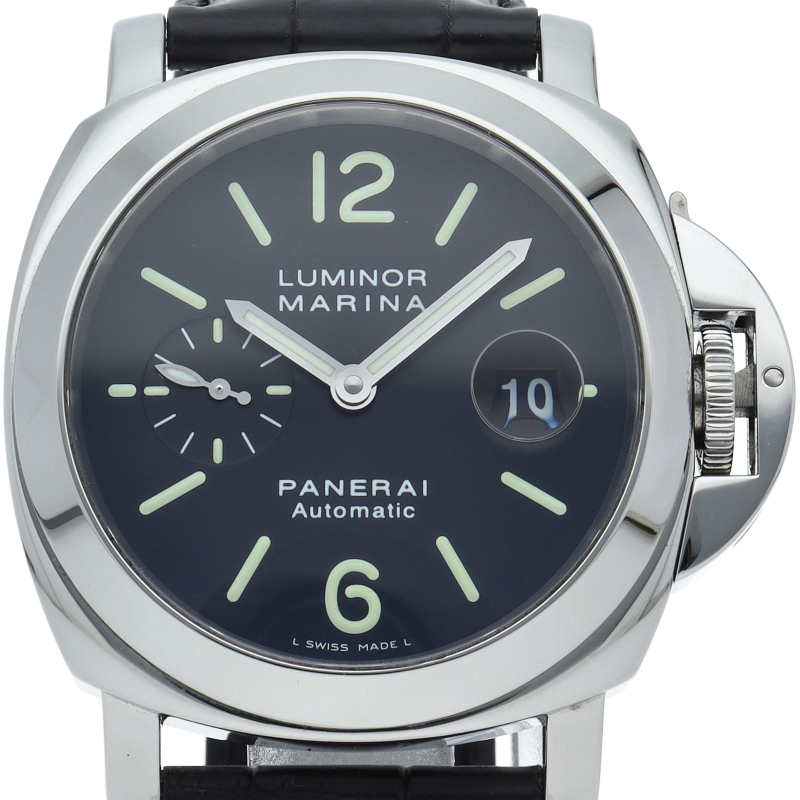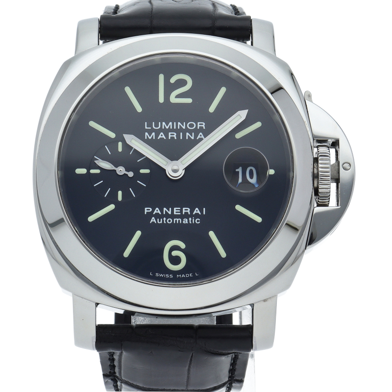 パネライの中でも人気度の高い「ルミノールマリーナ」。デイト表示とスモールセコンドを配置したシンプルな44ミリケースとオーソドックスなデザインが人気です。OP6763。