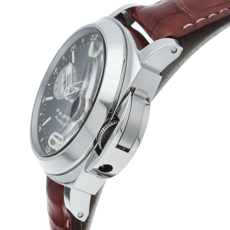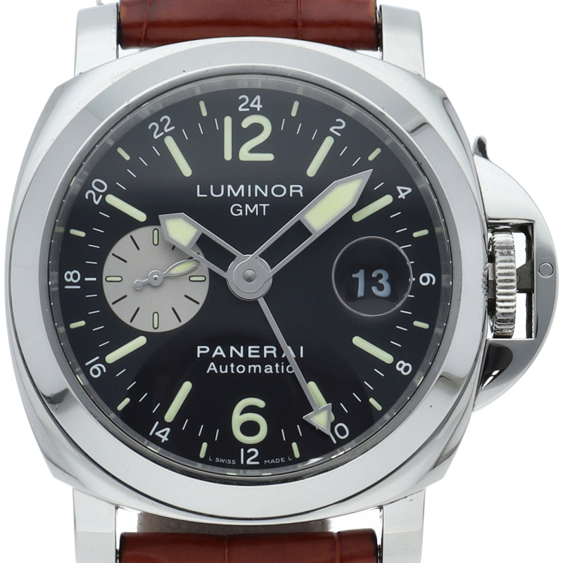 パネライならではの特徴的なデザインが人気の「ルミノールGMT」。通常のルミノールマリーナに更に便利なGMT機能が搭載され実用性・人気ともに高い1本。OP6761。