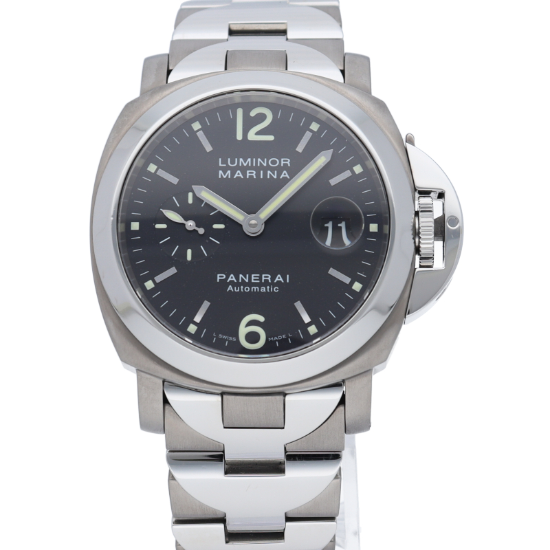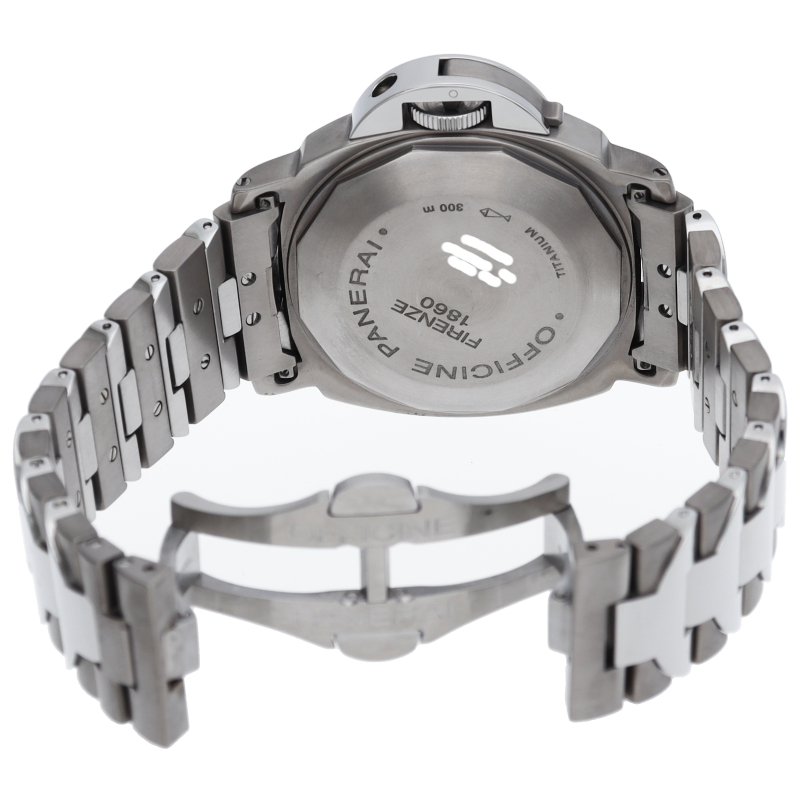 パネライの中でも人気度の高い「ルミノールマリーナ」。ステンレス部分はポリッシュ、チタン部分はヘアラインと、異なる仕上げで形成されています。それに合わせて針とインデックスも鏡面仕上げになっており、44ミリサイズのブレス付きモデルとしては、一風変わった雰囲気です。OP6558。