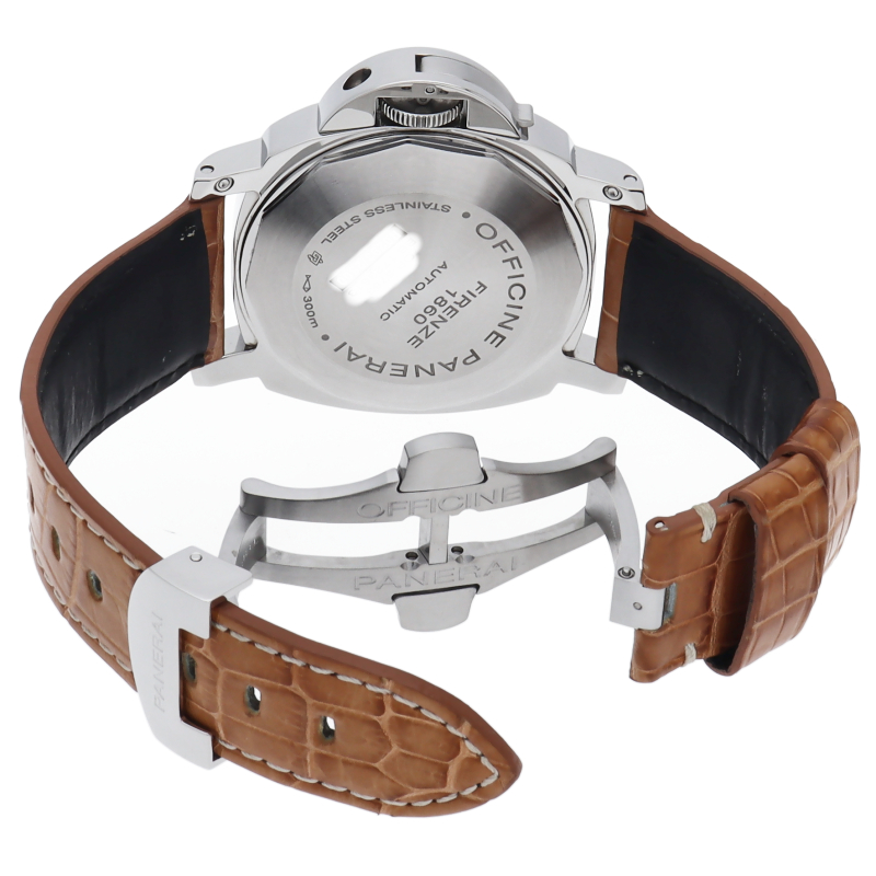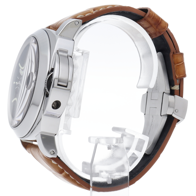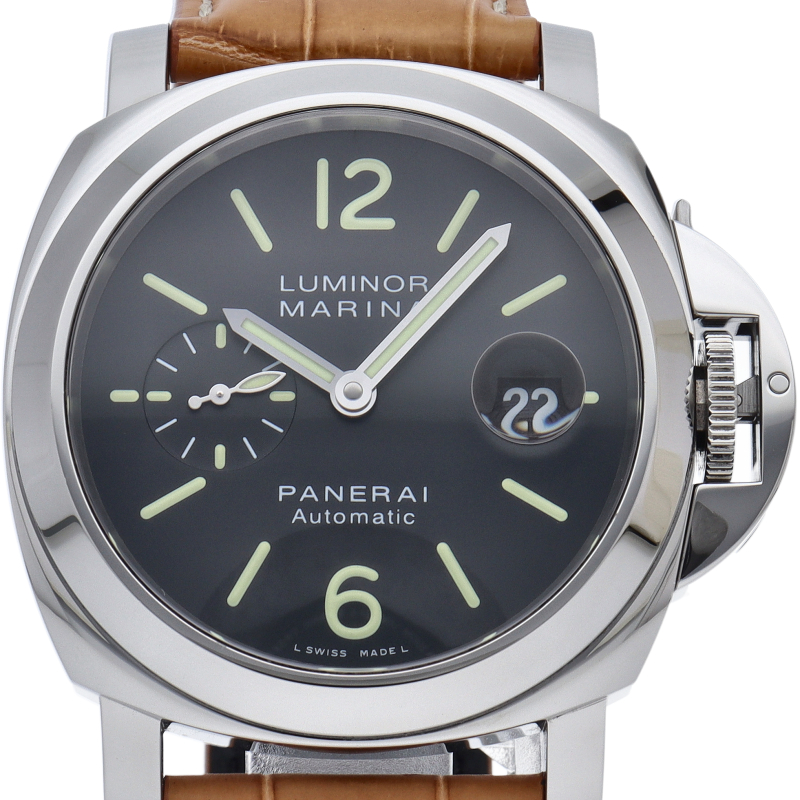 パネライの中でも人気度の高い「ルミノールマリーナ」。デイト表示とスモールセコンドを配置したシンプルな44ミリケースとオーソドックスなデザインが人気です。OP6763。