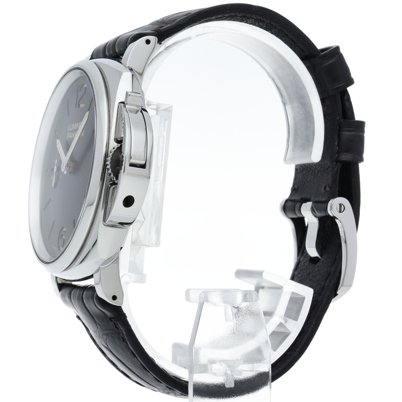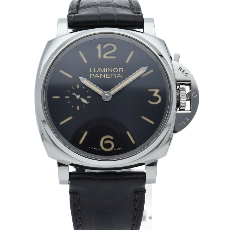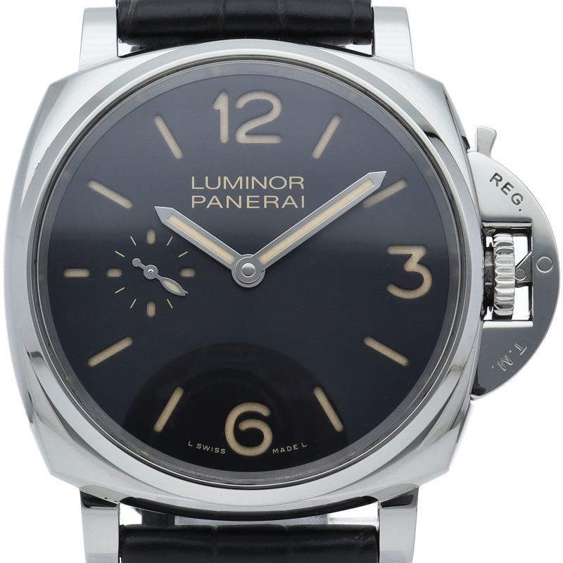 2016年新作「ルミノール ドゥエ スリーデイズ」。厚さわずか10.5mmのケースは、歴代の「ルミノール」のケースの中で最も薄いケースです。パネライの特徴でもある視認性高いダイアルは2層構造となっており、立体的な世界観を作り出します。派手すぎず落ち着いたデザインのため、ビジネスにもカジュアルにも、そしてどの年齢層にもおすすめ。30m防水。パネライ自社製手巻きキャリバーP.1000搭載。OP7078。