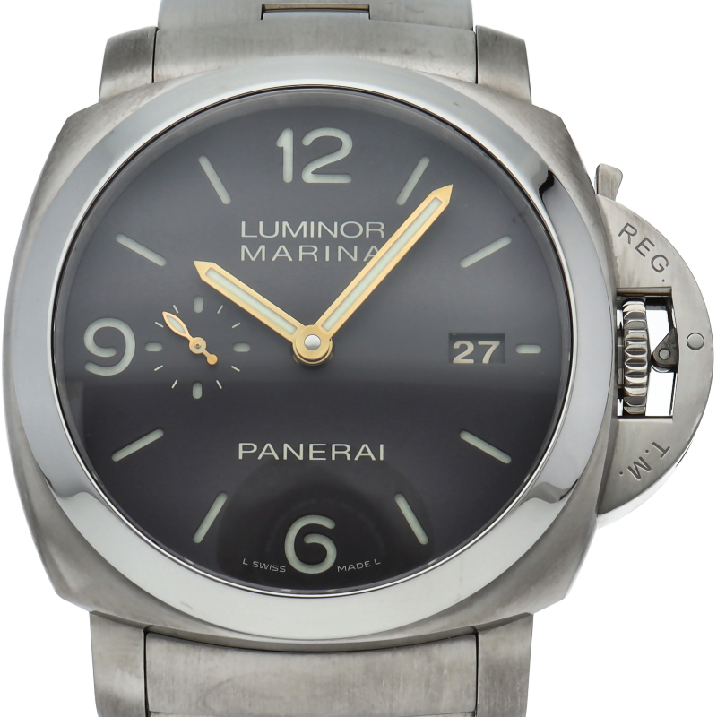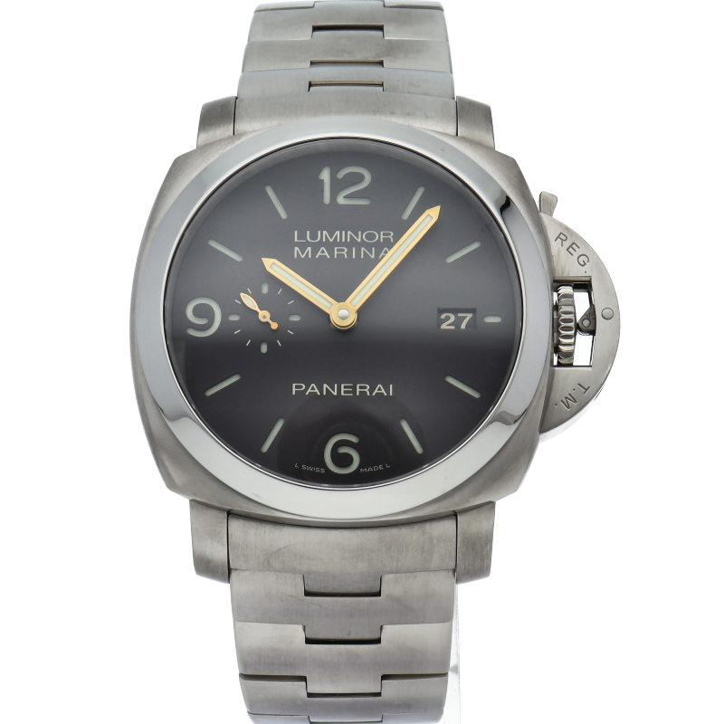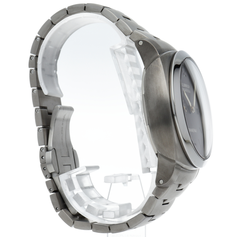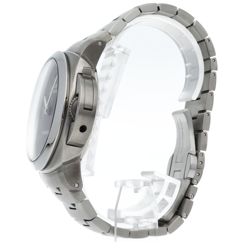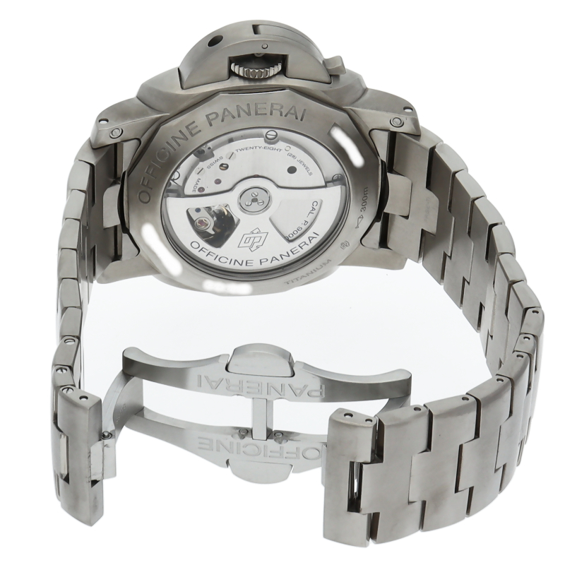 3日間のパワーリザーブをもつパネライ自社製ムーブ「P9000」を搭載。ケースサイズの大きさを特徴とするパネライは、ブレスレットモデルになるとかなりの重量感がありますが、素材にチタンを採用しているため軽量で耐久性が強く、実用性の高い1本となっております。OP6799。