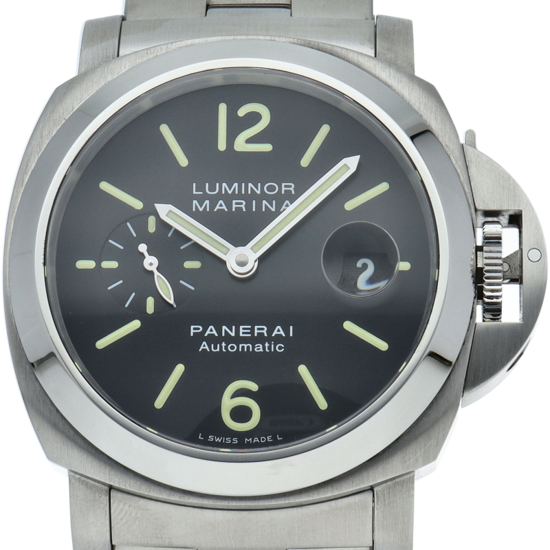 パネライの中でも人気度の高い「ルミノールマリーナ」。スモールセコンドを配置したシンプルな44ミリケースとオーソドックスなデザインが人気です。OP6763。