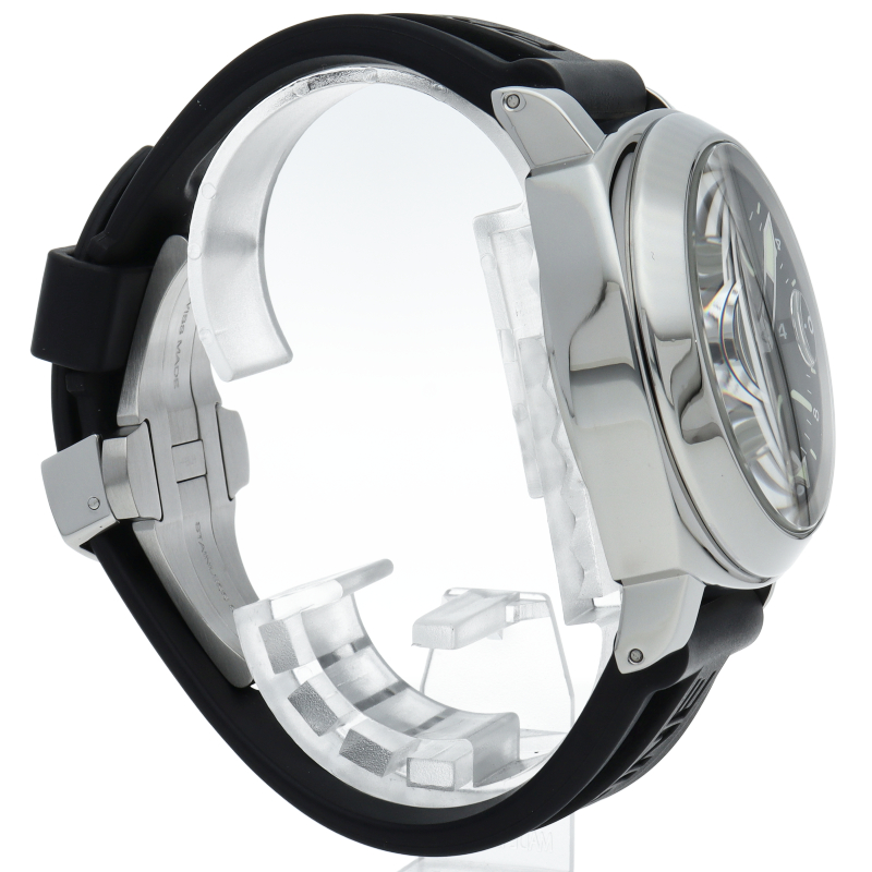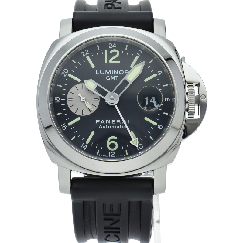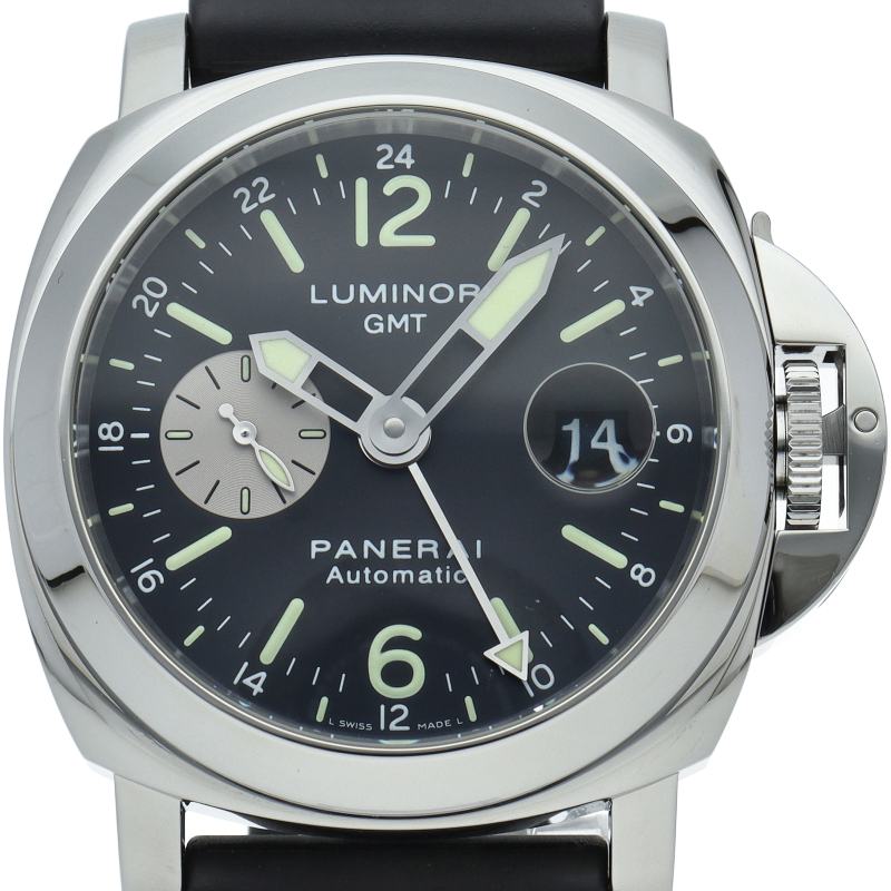 パネライならではの特徴的なデザインが人気の「ルミノールGMT」。通常のルミノールマリーナに更に便利なGMT機能が搭載され実用性・人気ともに高い1本。OP6761。