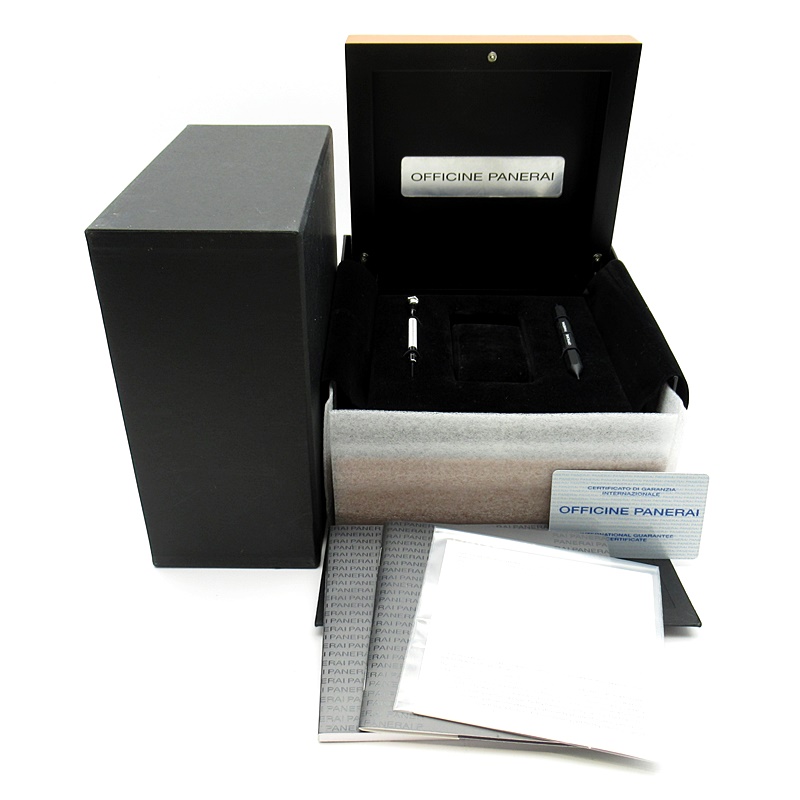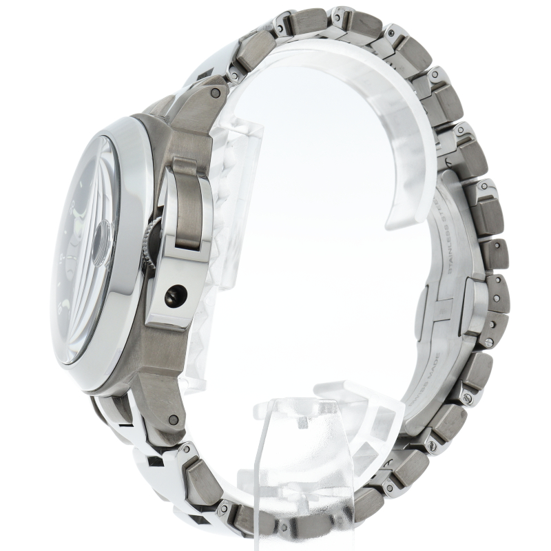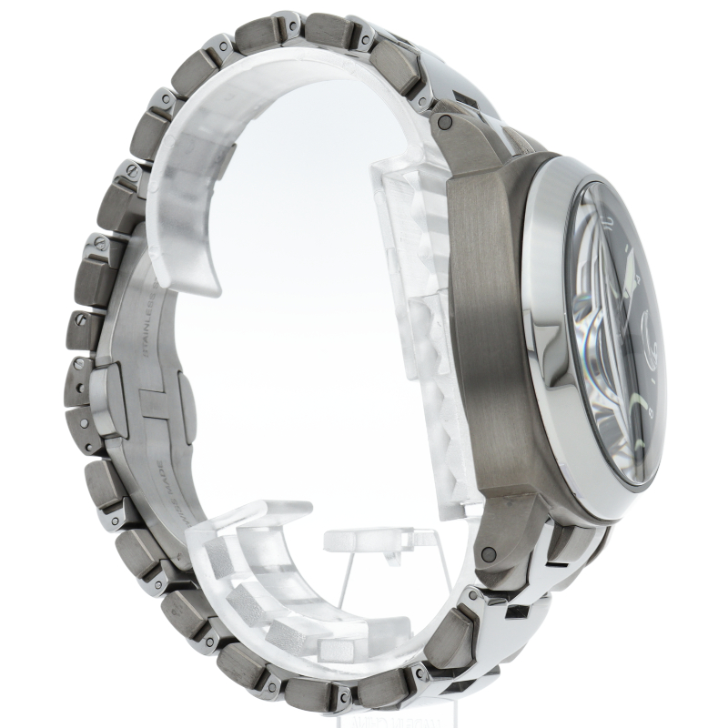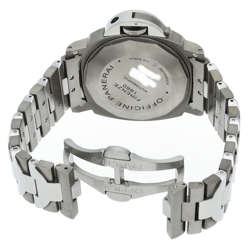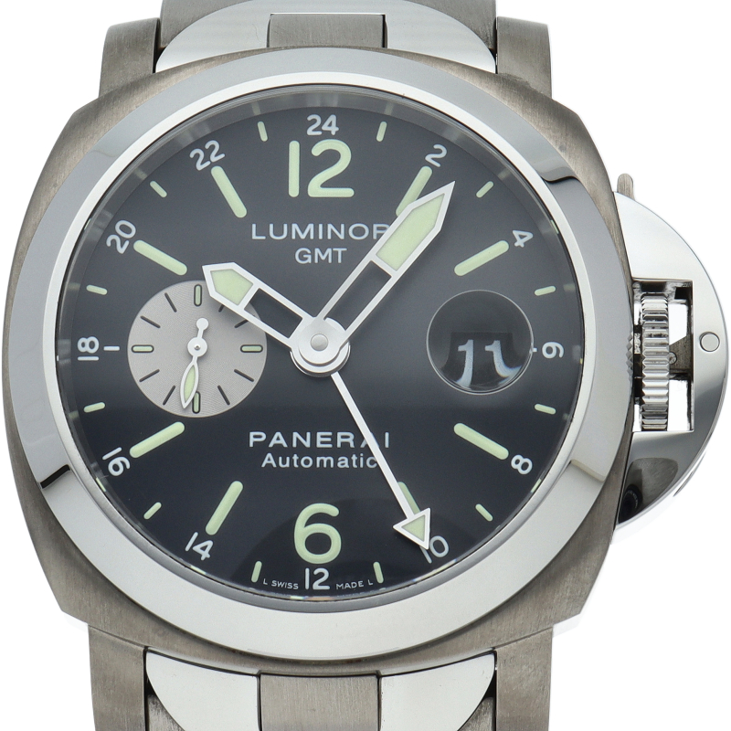 44mmブレスモデルのルミノールGMT。ステンレスとチタンを使用したコンビネーションモデル。珍しいブレスレットモデルです。実用性も高く、300mもの防水性能を誇ります。OP6593。