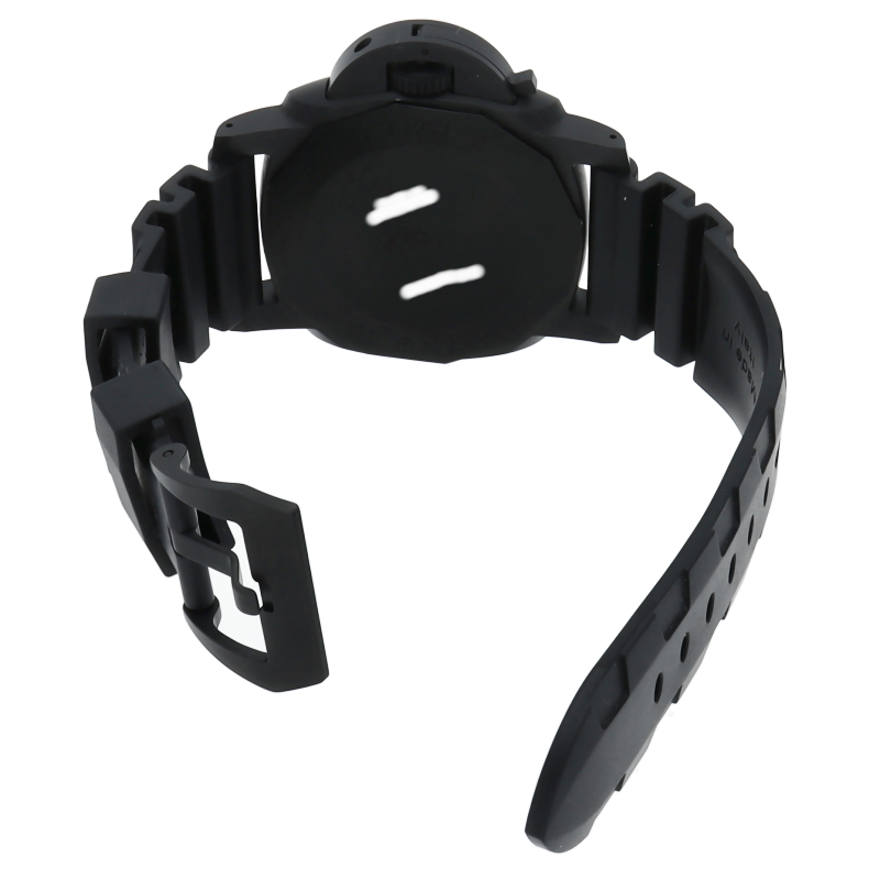 パネライコレクションを代表するシリーズ「サブマーシブル」の中から、カーボテックをケースに使用したPAM01616。基本デザインはそのまま受け継ぎ、ムーブメントに自社製キャリバーP.9010を搭載。約3日間のロングパワーリザーブを誇り、3%のベリリウムを含む銅の合金「グルシデュール」製テンプ、インカブロック耐震機構を備えるムーブメントになっています。