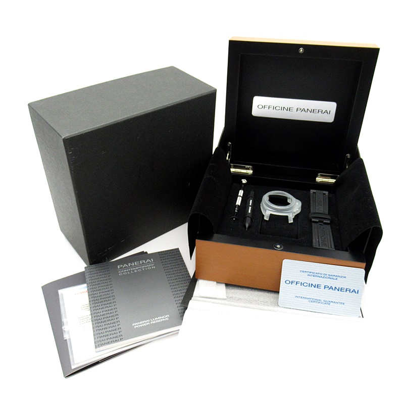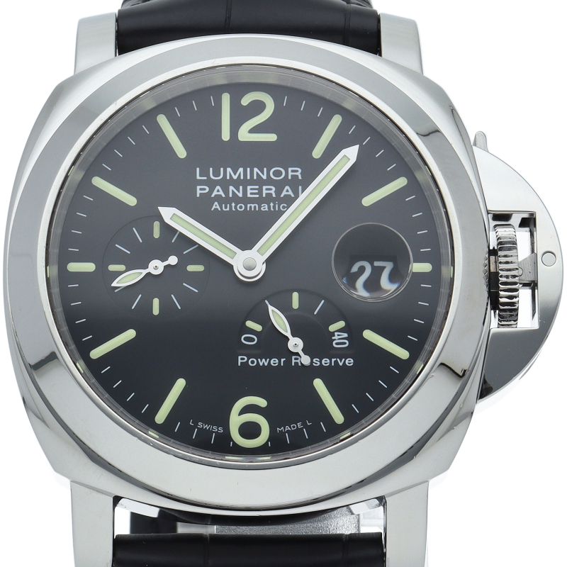パネライの中でも特に人気度の高いパワーリザーブ機能付の「ルミノールマリーナ44」。迫力ある44ミリサイズで仕事から遊びまで使えるオススメの1本。OP6762。