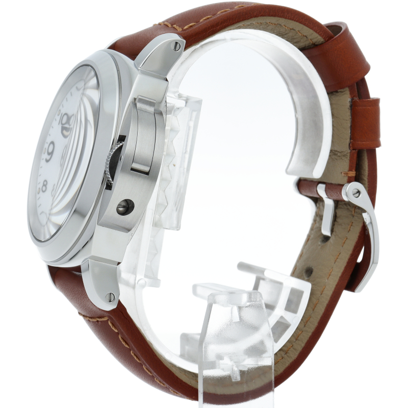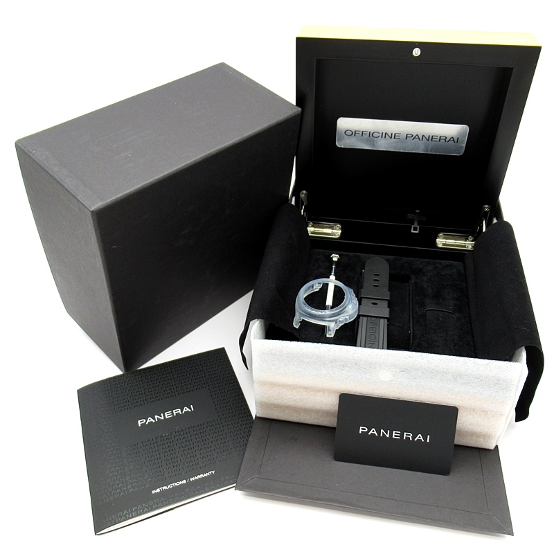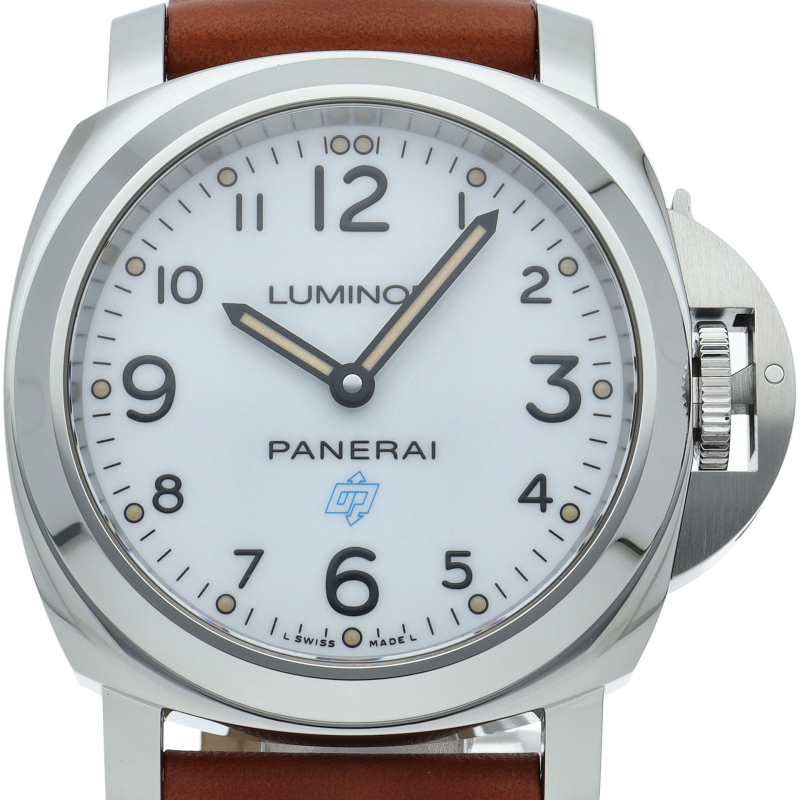 パネライのシンプルな「ルミノールベース」の文字盤にロゴが入ったモデル。6時位置にパネライの初期のモデルに見られた「OP」ロゴを刻印。ブラックのシンプルな文字盤には、夜光アラビア数字とアワーインデックスを備えており、夜間でも高い視認性を誇ります。ムーブメントにはパネライの完全自社生産のP.6000 キャリバーを搭載。OP7233。
