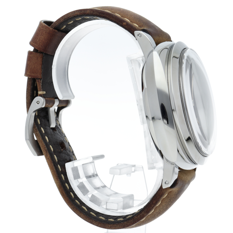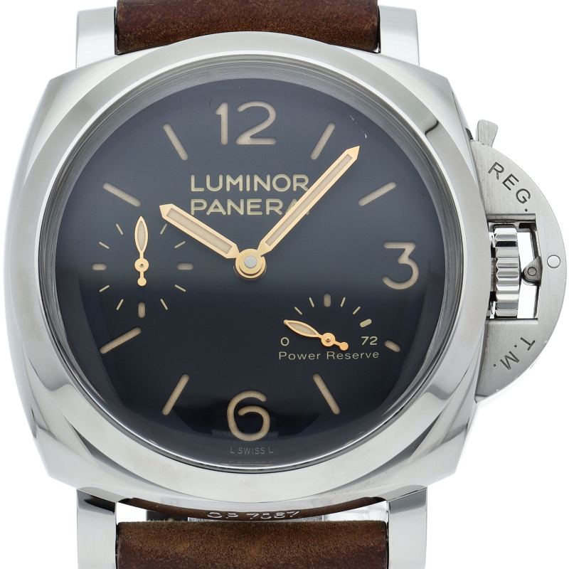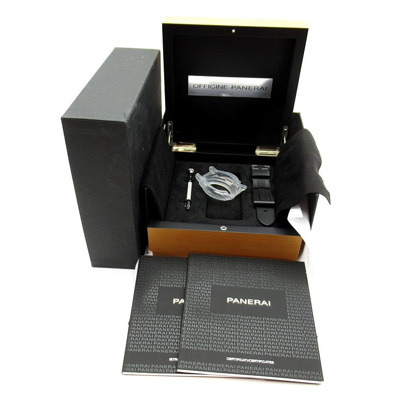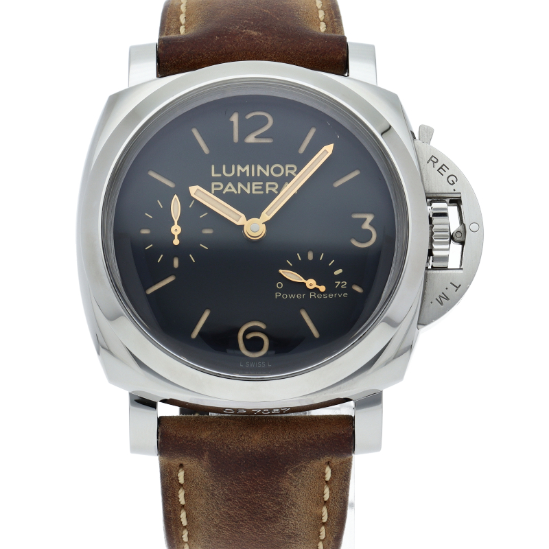 パネライの自社開発手巻きムーブメント「Cal.3002」を搭載したモデル。3日間のパワーリザーブ機能とパワーリザーブインジケータを備え、機能性とデザイン性を兼ね備えた1本。OP7067。